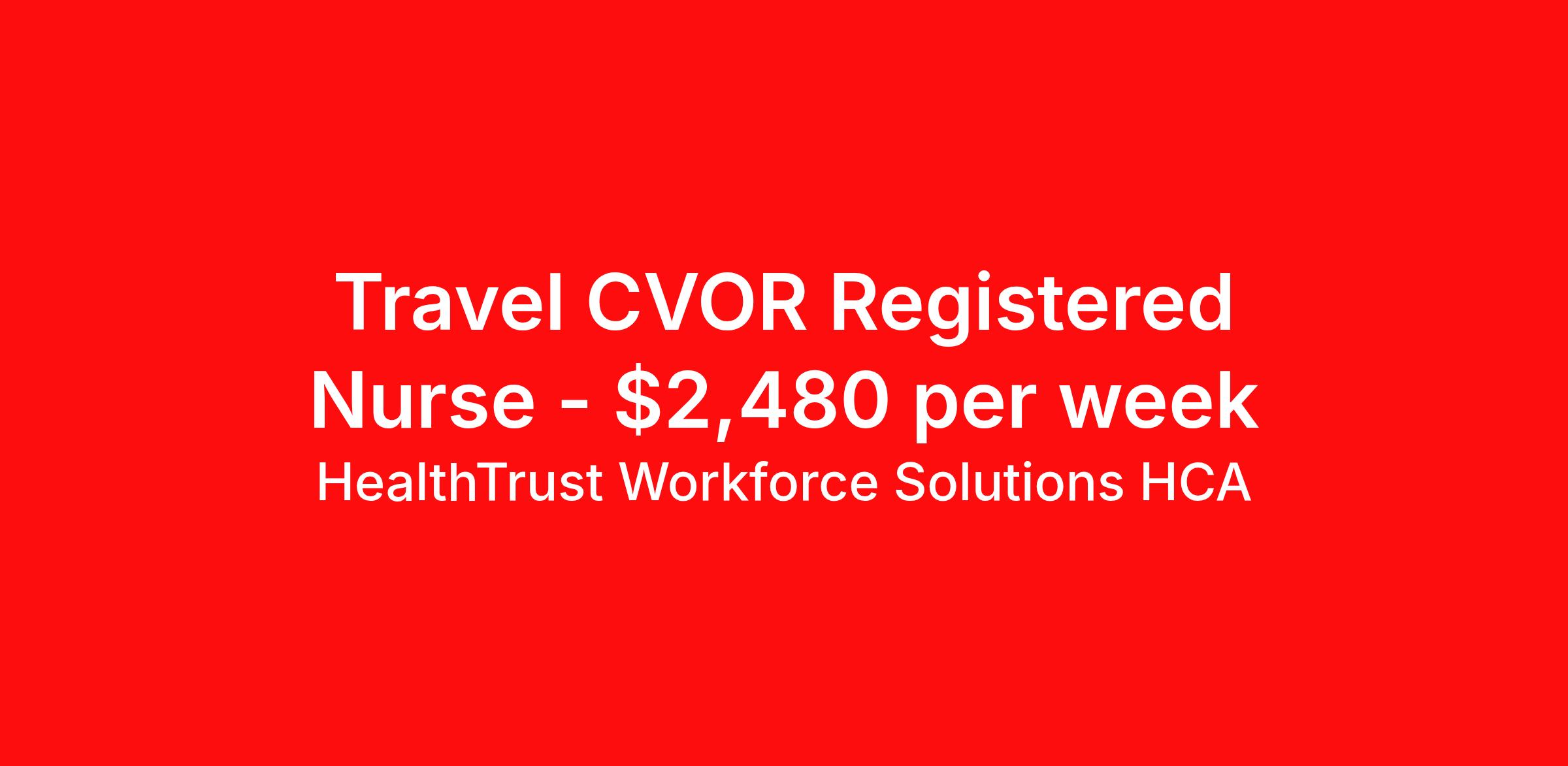 HealthTrust Workforce Solutions HCA is seeking a travel nurse RN CVOR for a travel nursing job in Plantation, Florida. Job Description & Requirements Specialty: CVOR Discipline: RN Duration: 13 weeks 36 hours per week Shift: 10 hours, days Employment Type: Travel Entrust Your Career to HealthTrust! At HealthTrust, we believe that healthcare is not defined by the four walls in which it is practiced; it’s defined by its people. We pride ourselves on crafting opportunities that expand skill sets, broaden career horizons, provide economic stability, and cultivate personal growth. HealthTrust Offers: Competitive Pay Packages Guaranteed hours Weekly direct deposit options 401k with Company Match Earn up to $750 for referrals Free Private Furnished Housing or Tax-Free Subsidy To get started, you will need: RN's a minimum of 1 year in specialty Allied 6 months of experience An adventurous spirit and fierce dedication Degree in corresponding specialty as required Appropriate certifications and licensure as needed for the specific position HealthTrust Benefits: Opportunities for a lifetime: When you become a part of the HCA family, you will have exclusive access to more opportunities than any other healthcare system in the nation. At HWS, we help open the door to a lifetime of lasting career opportunities. A culture of care: Our clinicians have made HWS an industry leader for over 25 years. We are passionate about our mission that, above all else, we are committed to the care and improvement of human life. Career Development: As a wholly owned subsidiary of HCA Healthcare, HWS is a preferred partner to thousands of top-performing hospitals. We provide our healthcare professionals with first-priority access to more than 200,000 jobs nationwide. We are uniquely positioned to offer you exclusive and direct access to HCA Healthcare’s vast network of facilities. Let us open the door to nationwide opportunities that fit your lifestyle! We are an equal opportunity employer and value diversity at our company. We do not discriminate on the basis of race, religion, color, national origin, gender, sexual orientation, age, marital status, veteran status, or disability status. Job Requirements Certifications ACLS (Required) BLS (Required) HealthTrust Workforce Solutions HCA Job ID 983643. Posted job title: Travel Nurse - Cardiovascular OR About HealthTrust Workforce Solutions HCA At HealthTrust Workforce Solutions, healthcare is not just about the four walls of a facility but about the people who provide and receive care. Our focus is on empowering healthcare professionals to deliver exceptional patient experiences by providing them with the necessary skills, tools, and support. We partner with healthcare facilities nationwide to ensure that the right professionals are in the right roles. We prioritize our clinicians by giving them a voice and access to opportunities to fulfill their mission of improving lives by providing quality patient care. We are committed to our core values of Trust, Innovation, Adaptability, Courage, and Accountability. We are dedicated to positively impacting the healthcare industry by providing first-priority access to more than 200,000 jobs nationwide to our healthcare professionals. Join us and be part of the HealthTrust family, where you can make a difference every day. We embrace our changing environment, and we maintain a culture that has a rich tradition of transforming itself to meet the challenges of the future. MISSION STATEMENT While putting great people in the right roles is essential, our mission is far greater. We want our clinicians to be part of the HealthTrust family, where healthcare professionals have a voice and are empowered with the right tools and opportunities to fulfill their personal mission of improving lives. Plus, as a preferred partner to thousands of top-performing hospitals, we provide our healthcare professionals with first-priority access to more than 200,000 jobs nationwide. Benefits Dental benefits Vision benefits Referral bonus Continuing Education Life insurance