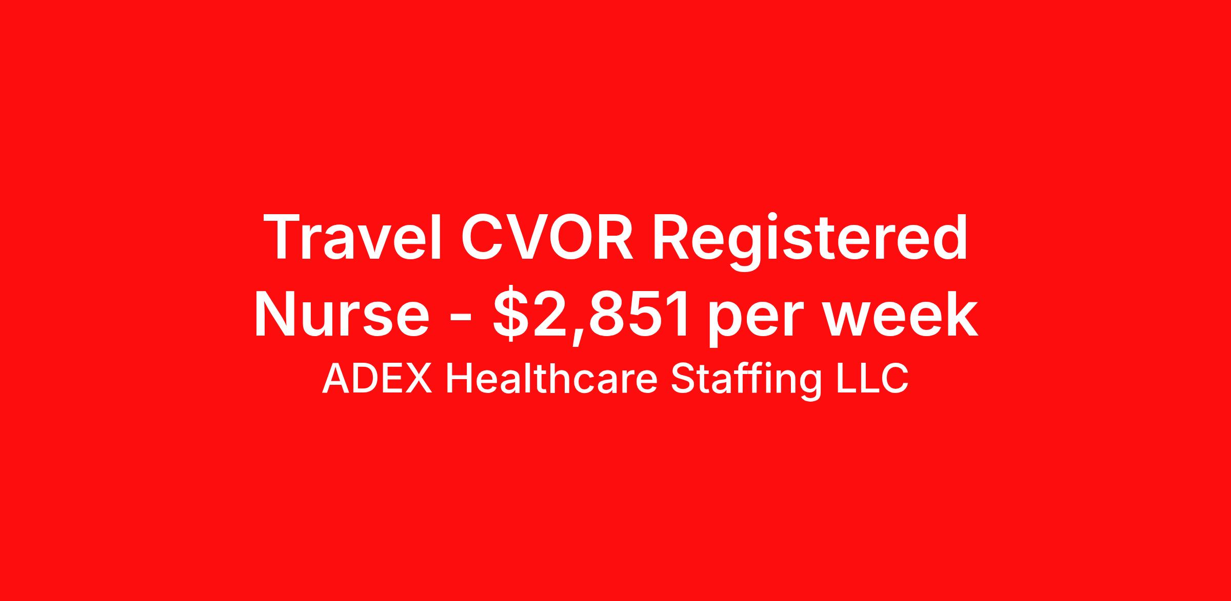 ADEX Healthcare Staffing LLC is seeking a travel nurse RN CVOR for a travel nursing job in Greenville, South Carolina. Job Description & Requirements Specialty: CVOR Discipline: RN Start Date: 04/13/2026 Duration: 13 weeks 40 hours per week Shift: 10 hours, days Employment Type: Travel RN Position Job Notes: Travel or Local Registered Nurse needed for ASAP start. A minimum of 2 years of recent hospital bedside experience is required. Candidates must be able to start within 5 weeks. Opportunity for extension upon successful completion of the initial assignment. $750 referral bonus available. Opportunity: Registered Nurse - CVOR Job Details: • Work 4x10 day shifts with call requirements of at least two days per week and 1-2 weekends every 6-week schedule • Overtime days available each week • Minimum of 5 weekend shifts per contract required • 2 years of experience required with 1 years recent unit experience • Travel experience required • Active South Carolina RN license required • Required certifications: AHA BLS, ACLS, CNOR • Must have 1-year minimum experience with EPIC EMR • Perform cardiovascular operating room procedures including CABG, TAVR, ECMO, valve replacements, and other cardiac surgeries • Handle average of 3 heart surgeries per day • Work with adult and geriatric patient populations • Must be willing to float to other qualified units based on census needs • Facility may call off 1 shift per 2 weeks • Complete pre-assignment testing and modules within 48 hours of contract signing • Orientation provided every Monday • Start date is 3 weeks after signed contract Facility: This major healthcare system operates a comprehensive cardiovascular program with advanced cardiac surgical capabilities. The facility provides complex cardiac procedures and maintains a high-volume cardiac surgery program with state-of-the-art equipment and technology. The organization emphasizes quality patient care and offers free parking for staff members. Location: Greenville, SC Greenville offers a vibrant city atmosphere in the heart of South Carolina with a thriving downtown area, excellent dining and entertainment options, and proximity to the beautiful Blue Ridge Mountains. The area provides an ideal blend of urban amenities and outdoor recreation opportunities, making it an attractive location for healthcare professionals seeking both career growth and quality of life. Adex Job ID 3193653. Pay package is based on 10 hour shifts and 40 hours per week (subject to confirmation) with tax-free stipend amount to be determined. About ADEX Healthcare Staffing LLC ADEX has been placing healthcare professionals across the US since 2004. Originally founded in Atlanta, GA, the company's headquarters are now located in Tampa, FL. JCAHO certified since 2009. Benefits Referral bonus