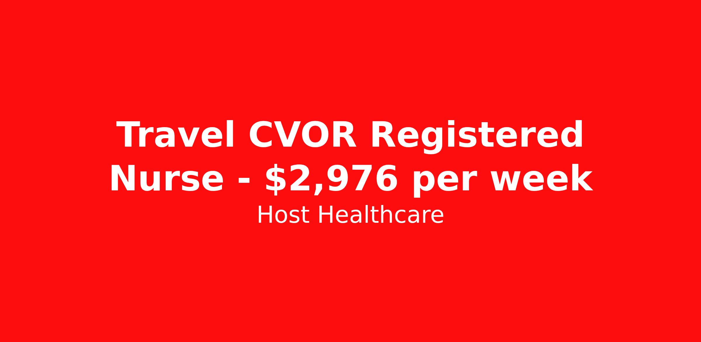 Host Healthcare is seeking a travel nurse RN CVOR for a travel nursing job in Philadelphia, Pennsylvania. Job Description & Requirements Specialty: CVOR Discipline: RN Start Date: 03/30/2026 Duration: 13 weeks 40 hours per week Shift: 10 hours, days Employment Type: Travel Host Healthcare Job ID a1fVX000002gFXlYAM. Pay package is based on 10 hour shifts and 40 hours per week (subject to confirmation) with tax-free stipend amount to be determined. Posted job title: RN - CVOR About Host Healthcare At Host Healthcare, we provide a truly comfortable experience as you explore your travel nursing, therapy, or allied career. We make your travel healthcare journey easy by taking care of all the details, so you don’t have to. We are on a mission to help others live better and we do this by helping the healers of the world be as comfortable as possible. With access to tens of thousands of travel nursing, therapy, and allied jobs in all 50 states, our responsive and friendly recruiters find your dream position based on what’s important to you. During your assignment, get access to premium benefits, including Day 1 medical that continues up to 30 days between assignments, 401K matching, travel reimbursements, dedicated housing support, and more. We also offer 24/7 support from our team and access to our on-staff clinicians so you can feel comfortable and confident throughout your entire assignment. Travel comfortably with Host Healthcare. Benefits Referral bonus School loan reimbursement Vision benefits Wellness and fitness programs Company provided housing options License and certification reimbursement Life insurance Medical benefits Mileage reimbursement Pet insurance Discount program Employee assistance programs Guaranteed Hours Health savings account Holiday Pay 401k retirement plan Continuing Education Dental benefits