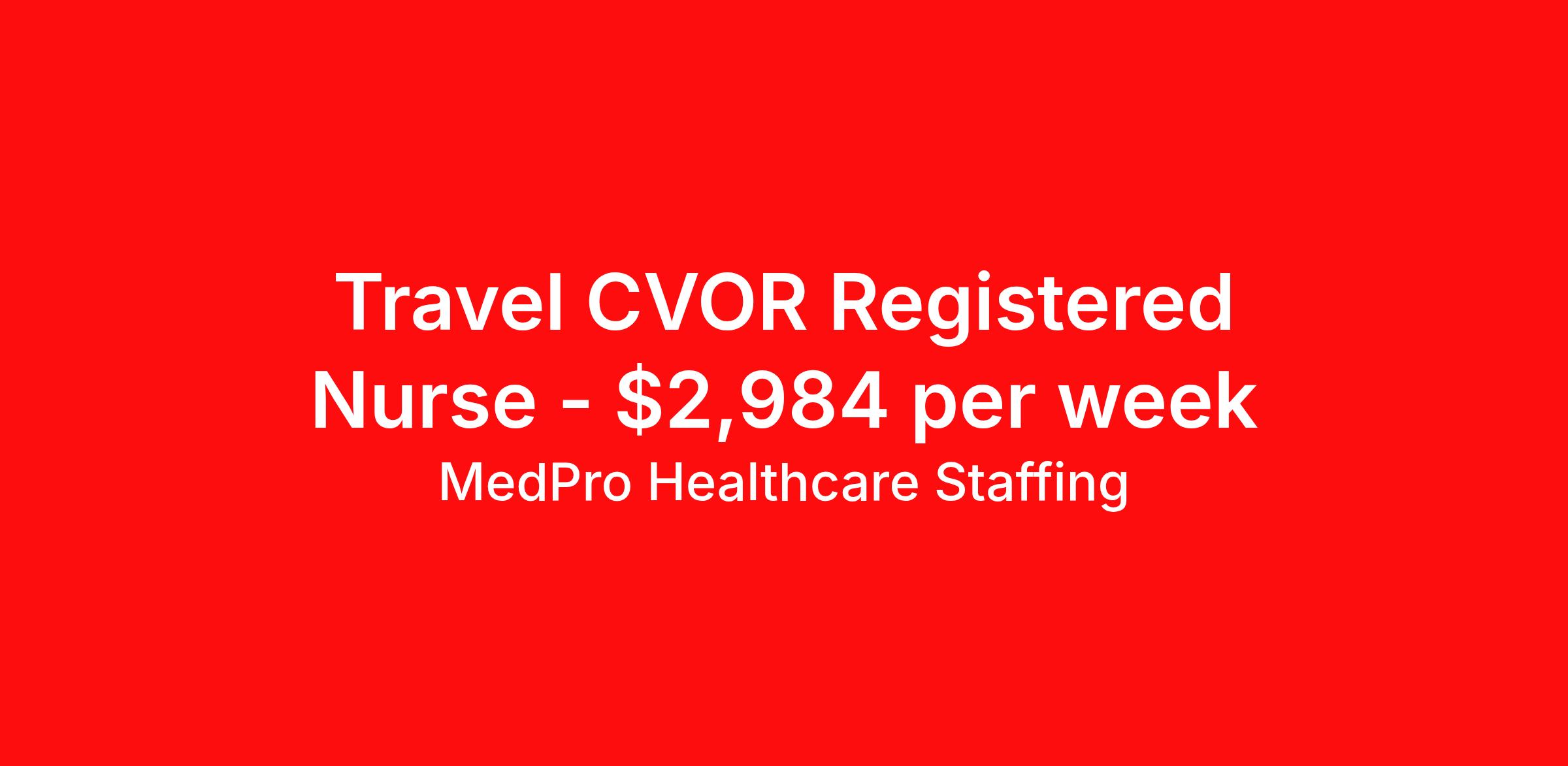 MedPro Healthcare Staffing is seeking a travel nurse RN CVOR for a travel nursing job in Milwaukee, Wisconsin. Job Description & Requirements Specialty: CVOR Discipline: RN Start Date: 04/12/2026 Duration: 13 weeks 40 hours per week Shift: 8 hours, days Employment Type: Travel MedPro Healthcare Staffing , a Joint Commission-certified staffing agency, is seeking a quality CVOR registered nurse (RN) for a travel assignment with one of our top healthcare clients. Requirements Eighteen months of recent experience in an Acute Care Surgery setting Active RN License Degree from an accredited nursing program BLS & ACLS may be required Benefits Weekly pay and direct deposit Full coverage of all credentialing fees Private housing or housing allowance Group Health insurance for you and your family Company-paid life and disability insurance Travel reimbursement 401(k) matching Unlimited Referral Bonuses up to $1,000 Duties Responsibilities Cardiovascular operating room nurse (CVOR RN) works within the operating room specializing in open heart surgical procedures. Provide surgical patient care by assessing, planning, and implementing the nursing care patients receive before, during and after surgery. Serve as patient educator, circulating nurse and/or scrub nurse. Circulating OR nurses work within the operating suite but outside of the sterile field. Scrub OR nurses handle and prepare operating instruments and equipment within the sterile field. About Agency MedPro Healthcare Staffing is a Joint Commission certified provider of contract staffing services. Since 1983, we have placed nursing and allied travelers in top healthcare facilities nationwide. Join us today for your very own MedPro Experience®. If qualified and interested, please call for immediate consideration. MedPro Staffing is an Equal Opportunity Employer. All applicants will be considered for employment without attention to race, color, religion, national origin, age, sex, disability, marital status or veteran status. Key Words: Registered Nurse, RN, Cardio vascular Operating Room, Open Heart, Scrub, Circulate, OR, Contract Nurse, Travel Nurse, Agency RN, Travel RN, Nursing, Contract *Weekly payment estimates are intended for informational purposes only and include a gross estimate of hourly wages and reimbursements for meal, incidental, and housing expenses. Your recruiter will confirm your eligibility and provide additional details. MedPro Job ID a0Fcx00000H5eUTEAZ. Pay package is based on 8 hour shifts and 40 hours per week (subject to confirmation) with tax-free stipend amount to be determined. Posted job title: CVOR Registered Nurse Nursing: CVOR (Circulate). About MedPro Healthcare Staffing At MedPro Healthcare Staffing , we believe no one cares more for caregivers than we do. Our mission is simple: you focus on your patients, and we’ll take care of the rest. As a Joint Commission-certified leader in temporary and contract healthcare staffing since 1983, MedPro has proudly connected nursing and allied travelers with top healthcare facilities across the nation. With thousands of job opportunities available nationwide, we make it easy to find assignments that align with your goals and lifestyle. Our on-staff clinical support team—alongside a compassionate group of experienced recruiters—provides hands-on guidance every step of the way. From Day 1 medical benefits and a 401(k) plan to personalized career support, we’re committed to ensuring every professional we serve feels valued, cared for, and empowered to succeed. Guided by a CEO who is a Registered Nurse, MedPro is built on a foundation of clinical insight and genuine compassion for the caregiving community. Through The MedPro Experience® , we deliver travel assignments that are rewarding, memorable, and designed to help you DREAM big, EXPLORE often, and ACHIEVE greatness. Benefits Day 1 medical, dental, and vision benefits for you and your family Weekly pay and direct deposit Unlimited Referral Bonuses starting at $500 On Staff Clinical Support Team Access to nationwide travel assignments MPX Mobile app -24/7 real-time access to jobs, credentials, assignment details, and more Full coverage of all credentialing fees Private housing or housing allowance Tax Free Per Diems, Housing Stipends and Travel Reimbursements Company-paid life and disability insurance Travel reimbursement 401(k) matching Benefits Weekly pay Referral bonus Employee assistance programs