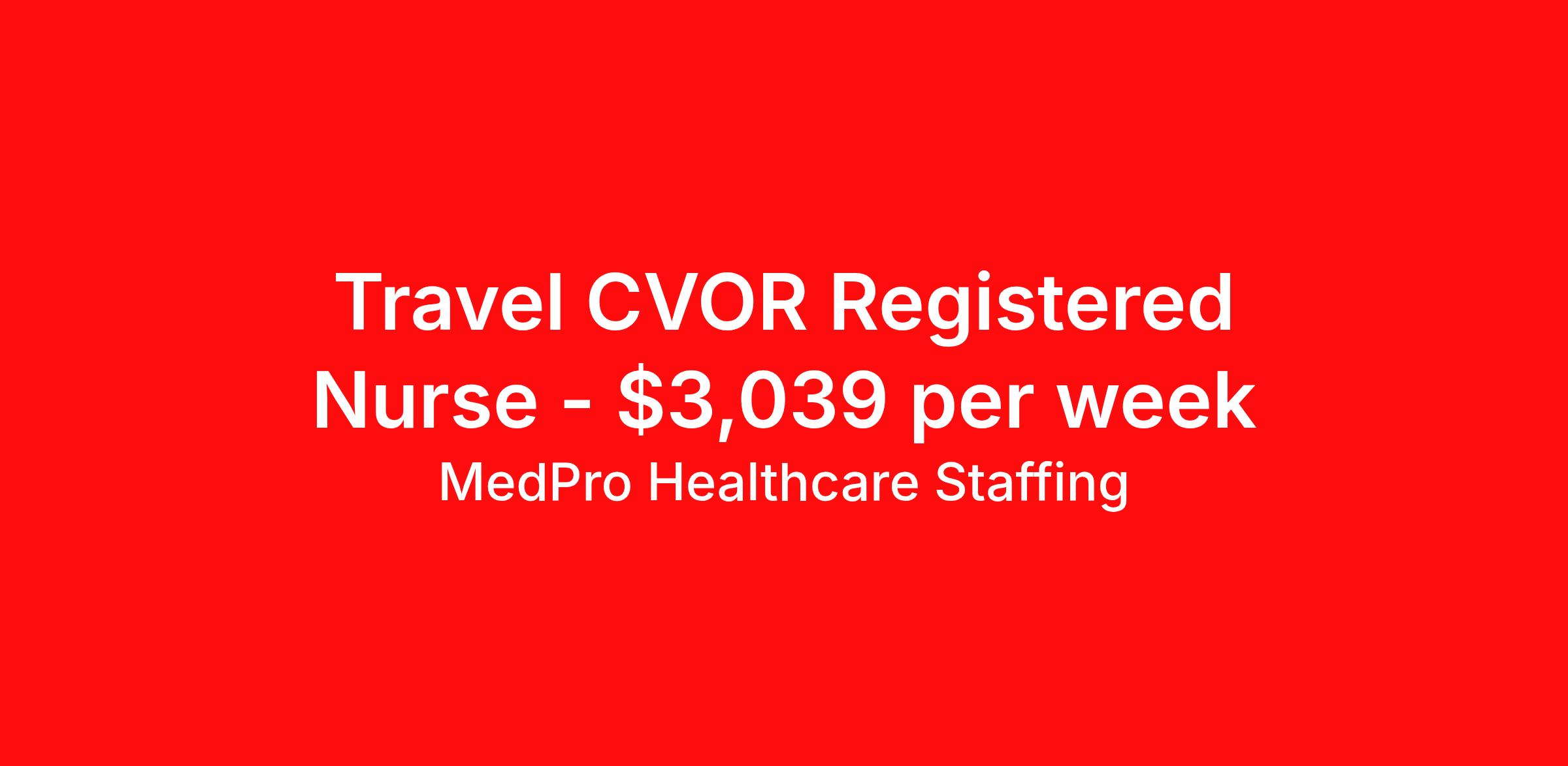 MedPro Healthcare Staffing is seeking a travel nurse RN CVOR for a travel nursing job in Columbus, Ohio. Job Description & Requirements Specialty: CVOR Discipline: RN Start Date: 05/04/2026 Duration: 13 weeks 40 hours per week Shift: 12 hours, days Employment Type: Travel MedPro Healthcare Staffing , a Joint Commission-certified staffing agency, is seeking a quality CVOR registered nurse (RN) for a travel assignment with one of our top healthcare clients. Requirements Eighteen months of recent experience in an Acute Care Surgery setting Active RN License Degree from an accredited nursing program BLS & ACLS may be required Benefits Weekly pay and direct deposit Full coverage of all credentialing fees Private housing or housing allowance Group Health insurance for you and your family Company-paid life and disability insurance Travel reimbursement 401(k) matching Unlimited Referral Bonuses up to $1,000 Duties Responsibilities Cardiovascular operating room nurse (CVOR RN) works within the operating room specializing in open heart surgical procedures. Provide surgical patient care by assessing, planning, and implementing the nursing care patients receive before, during and after surgery. Serve as patient educator, circulating nurse and/or scrub nurse. Circulating OR nurses work within the operating suite but outside of the sterile field. Scrub OR nurses handle and prepare operating instruments and equipment within the sterile field. About Agency MedPro Healthcare Staffing is a Joint Commission certified provider of contract staffing services. Since 1983, we have placed nursing and allied travelers in top healthcare facilities nationwide. Join us today for your very own MedPro Experience®. If qualified and interested, please call for immediate consideration. MedPro Staffing is an Equal Opportunity Employer. All applicants will be considered for employment without attention to race, color, religion, national origin, age, sex, disability, marital status or veteran status. Key Words: Registered Nurse, RN, Cardio vascular Operating Room, Open Heart, Scrub, Circulate, OR, Contract Nurse, Travel Nurse, Agency RN, Travel RN, Nursing, Contract *Weekly payment estimates are intended for informational purposes only and include a gross estimate of hourly wages and reimbursements for meal, incidental, and housing expenses. Your recruiter will confirm your eligibility and provide additional details. MedPro Job ID a0Fcx00000HThhJEAT. Pay package is based on 12 hour shifts and 40 hours per week (subject to confirmation) with tax-free stipend amount to be determined. Posted job title: CVOR Registered Nurse Nursing: CVOR (Scrub). About MedPro Healthcare Staffing At MedPro Healthcare Staffing , we believe no one cares more for caregivers than we do. Our mission is simple: you focus on your patients, and we’ll take care of the rest. As a Joint Commission-certified leader in temporary and contract healthcare staffing since 1983, MedPro has proudly connected nursing and allied travelers with top healthcare facilities across the nation. With thousands of job opportunities available nationwide, we make it easy to find assignments that align with your goals and lifestyle. Our on-staff clinical support team—alongside a compassionate group of experienced recruiters—provides hands-on guidance every step of the way. From Day 1 medical benefits and a 401(k) plan to personalized career support, we’re committed to ensuring every professional we serve feels valued, cared for, and empowered to succeed. Guided by a CEO who is a Registered Nurse, MedPro is built on a foundation of clinical insight and genuine compassion for the caregiving community. Through The MedPro Experience® , we deliver travel assignments that are rewarding, memorable, and designed to help you DREAM big, EXPLORE often, and ACHIEVE greatness. Benefits Day 1 medical, dental, and vision benefits for you and your family Weekly pay and direct deposit Unlimited Referral Bonuses starting at $500 On Staff Clinical Support Team Access to nationwide travel assignments MPX Mobile app -24/7 real-time access to jobs, credentials, assignment details, and more Full coverage of all credentialing fees Private housing or housing allowance Tax Free Per Diems, Housing Stipends and Travel Reimbursements Company-paid life and disability insurance Travel reimbursement 401(k) matching Benefits Weekly pay Referral bonus Employee assistance programs