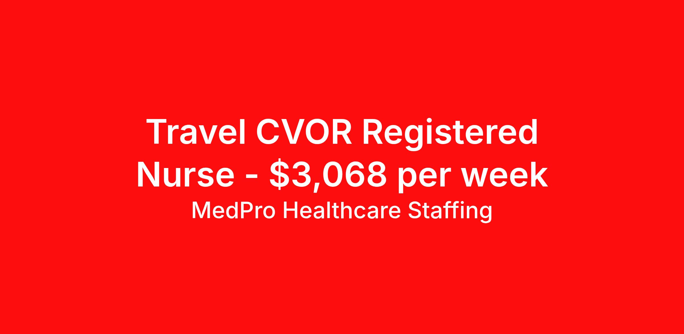 MedPro Healthcare Staffing is seeking a travel nurse RN CVOR for a travel nursing job in Lebanon, Pennsylvania. Job Description & Requirements Specialty: CVOR Discipline: RN Start Date: 04/20/2026 Duration: 13 weeks 40 hours per week Shift: 8 hours, days Employment Type: Travel MedPro Healthcare Staffing , a Joint Commission-certified staffing agency, is seeking a quality CVOR registered nurse (RN) for a travel assignment with one of our top healthcare clients. Requirements Eighteen months of recent experience in an Acute Care Surgery setting Active RN License Degree from an accredited nursing program BLS & ACLS may be required Benefits Weekly pay and direct deposit Full coverage of all credentialing fees Private housing or housing allowance Group Health insurance for you and your family Company-paid life and disability insurance Travel reimbursement 401(k) matching Unlimited Referral Bonuses up to $1,000 Duties Responsibilities Cardiovascular operating room nurse (CVOR RN) works within the operating room specializing in open heart surgical procedures. Provide surgical patient care by assessing, planning, and implementing the nursing care patients receive before, during and after surgery. Serve as patient educator, circulating nurse and/or scrub nurse. Circulating OR nurses work within the operating suite but outside of the sterile field. Scrub OR nurses handle and prepare operating instruments and equipment within the sterile field. About Agency MedPro Healthcare Staffing is a Joint Commission certified provider of contract staffing services. Since 1983, we have placed nursing and allied travelers in top healthcare facilities nationwide. Join us today for your very own MedPro Experience®. If qualified and interested, please call for immediate consideration. MedPro Staffing is an Equal Opportunity Employer. All applicants will be considered for employment without attention to race, color, religion, national origin, age, sex, disability, marital status or veteran status. Key Words: Registered Nurse, RN, Cardio vascular Operating Room, Open Heart, Scrub, Circulate, OR, Contract Nurse, Travel Nurse, Agency RN, Travel RN, Nursing, Contract *Weekly payment estimates are intended for informational purposes only and include a gross estimate of hourly wages and reimbursements for meal, incidental, and housing expenses. Your recruiter will confirm your eligibility and provide additional details. MedPro Job ID a0Fcx00000Gksk9EAB. Pay package is based on 8 hour shifts and 40 hours per week (subject to confirmation) with tax-free stipend amount to be determined. Posted job title: CVOR Registered Nurse Nursing: CVOR (Scrub). About MedPro Healthcare Staffing At MedPro Healthcare Staffing , we believe no one cares more for caregivers than we do. Our mission is simple: you focus on your patients, and we’ll take care of the rest. As a Joint Commission-certified leader in temporary and contract healthcare staffing since 1983, MedPro has proudly connected nursing and allied travelers with top healthcare facilities across the nation. With thousands of job opportunities available nationwide, we make it easy to find assignments that align with your goals and lifestyle. Our on-staff clinical support team—alongside a compassionate group of experienced recruiters—provides hands-on guidance every step of the way. From Day 1 medical benefits and a 401(k) plan to personalized career support, we’re committed to ensuring every professional we serve feels valued, cared for, and empowered to succeed. Guided by a CEO who is a Registered Nurse, MedPro is built on a foundation of clinical insight and genuine compassion for the caregiving community. Through The MedPro Experience® , we deliver travel assignments that are rewarding, memorable, and designed to help you DREAM big, EXPLORE often, and ACHIEVE greatness. Benefits Day 1 medical, dental, and vision benefits for you and your family Weekly pay and direct deposit Unlimited Referral Bonuses starting at $500 On Staff Clinical Support Team Access to nationwide travel assignments MPX Mobile app -24/7 real-time access to jobs, credentials, assignment details, and more Full coverage of all credentialing fees Private housing or housing allowance Tax Free Per Diems, Housing Stipends and Travel Reimbursements Company-paid life and disability insurance Travel reimbursement 401(k) matching Benefits Weekly pay Referral bonus Employee assistance programs