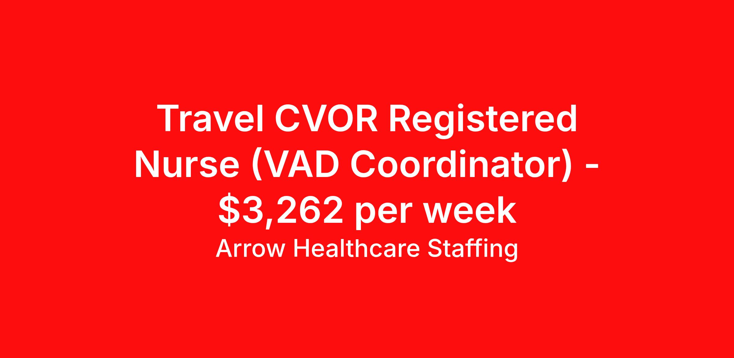 Arrow Healthcare Staffing is seeking a travel nurse RN CVOR for a travel nursing job in Ann Arbor, Michigan. Job Description & Requirements Specialty: CVOR Discipline: RN Start Date: 04/13/2026 Duration: 13 weeks 40 hours per week Shift: 10 hours, days Employment Type: Travel Arrow Healthcare Staffing Job ID 17870015. Pay package is based on 10 hour shifts and 40.0 hours per week (subject to confirmation) with tax-free stipend amount to be determined. Posted job title: RN - CVOR RN CVOR About Arrow Healthcare Staffing Arrow Healthcare Staffing is a Midwest based travel nursing and allied health recruiting firm. We specialize in local/ travel nursing, medical laboratory, pharmacy, radiology/imaging, therapy, and executive/leadership recruitment. We offer direct hospital contracts and all of the top benefits in the marketplace today. Benefits Medical benefits Vision benefits Weekly pay Benefits start day 1 Holiday Pay 401k retirement plan Dental benefits License and certification reimbursement Guaranteed Hours Continuing Education Cancelation protection Mileage reimbursement Referral bonus
