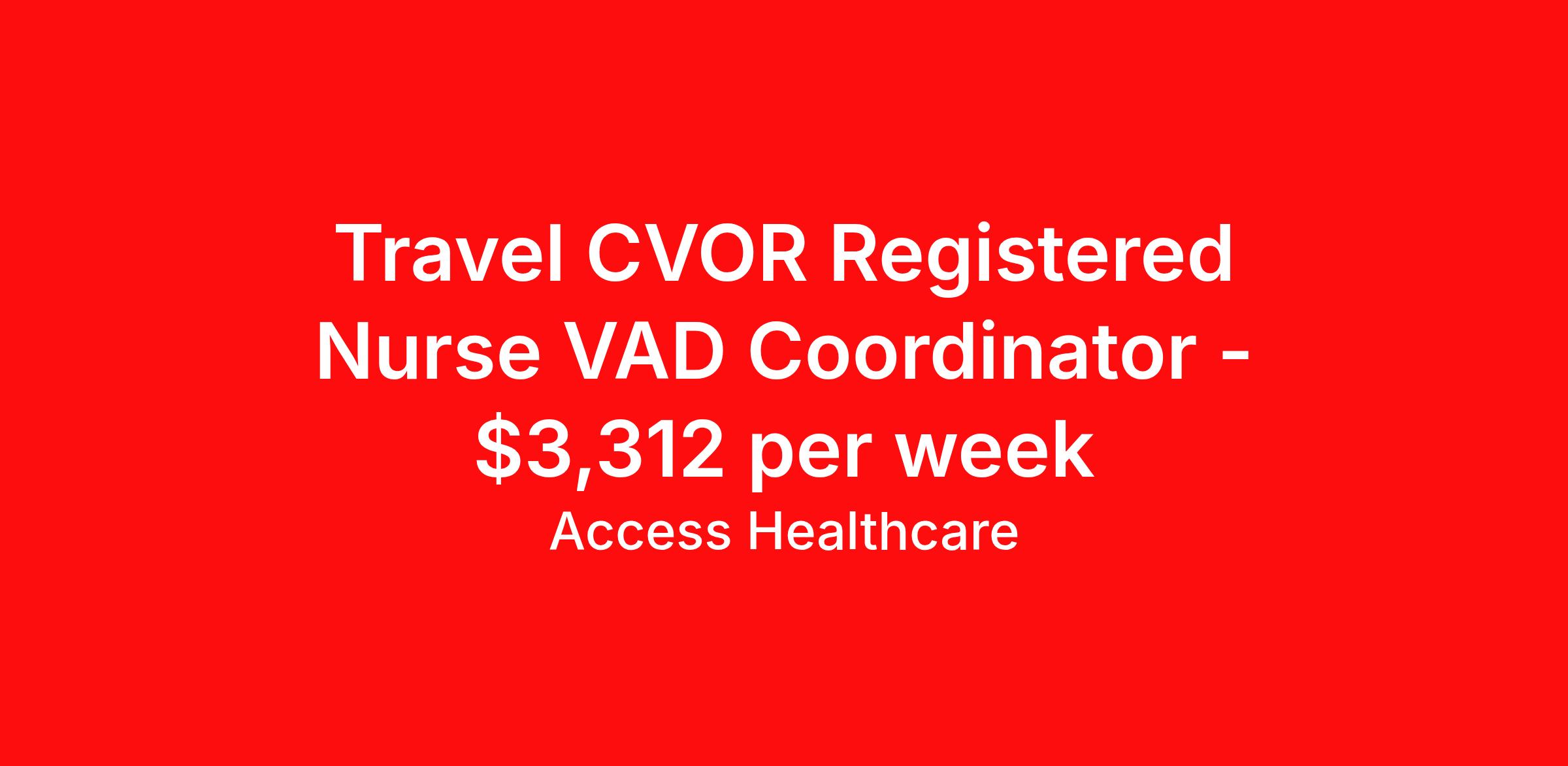 Access Healthcare is seeking a travel nurse RN CVOR for a travel nursing job in Ann Arbor, Michigan. Job Description & Requirements Specialty: CVOR Discipline: RN Start Date: 05/18/2026 Duration: 13 weeks 40 hours per week Shift: 10 hours, days Employment Type: Travel Access Healthcare Job ID 77225140. Pay package is based on 10 hour shifts and 40 hours per week (subject to confirmation) with tax-free stipend amount to be determined. About Access Healthcare Access Healthcare aims to provide superior service to our nursing family by providing around the clock support, competitive pay packages and an unmatched benefits package! Unlike other agencies, we offer a true family feel and work with you to find the placement that is right for you. We offer one of the top leading pay packages in the industry and we are ready to get you the money you deserve! Access Healthcare was founded by two travel nurses, Danielle and Diego, who had a dream and a shared vision of creating an agency which all nurses would want to work with. Our passion has led us to where we are today as one of the top 10 agencies in our home state of New Jersey, with access to contracts in all 50 states! We encourage you to join our team and we cannot wait to get to know you!