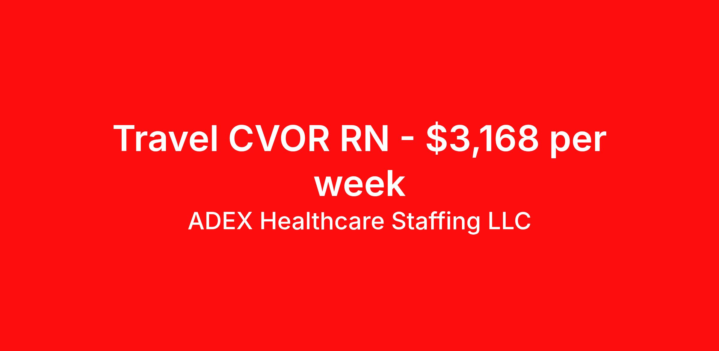 ADEX Healthcare Staffing LLC is seeking a travel nurse RN CVOR for a travel nursing job in Wausau, Wisconsin. Job Description & Requirements Specialty: CVOR Discipline: RN Start Date: 04/06/2026 Duration: 13 weeks 40 hours per week Shift: 8 hours, days Employment Type: Travel RN Position Job Notes: Travel or Local Registered Nurse needed for ASAP start. A minimum of 2 years of recent hospital bedside experience is required. Candidates must be able to start within 5 weeks. Opportunity for extension upon successful completion of the initial assignment. $750 referral bonus available. Opportunity: Registered Nurse - OR Job Details: • Work Monday through Friday various day shifts with 40 hours guaranteed per week • 13-week contract assignment requiring traveler to be outside 50-mile radius from facility • On-call requirements: 1 night of call per week, 1 weekend per month, 1 backup per week with 30-minute response time to OR • Work every 3rd-4th weekend and holiday rotation • Vehicle required due to 30-minute response time requirement • Work in 21 operating rooms covering all specialties with 4-5 rooms assigned per day • Assist anesthesia providers throughout variety of specialties with main focus on cardiothoracic program • Required to assist with intubations, fiber optic scopes during intubation, sterile techniques with central lines • Assist anesthesiologist with placement of arterial lines, central lines, lumbar drains, Swan Ganz catheters • Perform IV starts, draw labs, set up medication pumps, operate Belmont, Cell Saver, and Level I equipment • Support anesthesia during heart surgeries, traumas, elective surgeries, and general surgeries • Must perform downtime tasks when needed and maintain flexible approach • 2-week orientation process with additional anesthesia skills training as needed • Scrub colors provided by facility • During flu season, mask required at all times if declining flu and COVID vaccination • Minimum 3 years OR experience with anesthesia experience required • Prior travel experience required • Required certifications: AHA or ARC BLS, ACLS, Wisconsin RN License or compact RN • Epic charting system experience required • Must have strong OR/CVOR circulating experience and conscious sedation experience preferred • Associate degree or certificate required education level Facility: This healthcare facility operates a comprehensive surgical program featuring 21 operating rooms that handle all medical specialties with a particular emphasis on their cardiothoracic program. The facility utilizes advanced medical equipment including Cell Saver, Belmont systems, and Epic charting systems. The organization maintains high standards for patient care and offers extensive orientation and training programs to ensure staff competency across various anesthesia procedures and surgical specialties. Location: Wausau, WI Wausau offers a perfect blend of small-town charm and outdoor recreation opportunities in central Wisconsin, surrounded by beautiful forests, lakes, and rivers ideal for year-round activities. The area provides excellent quality of life with affordable living costs and easy access to both urban amenities and natural attractions. Adex Job ID ASWAHW-29174. Pay package is based on 8 hour shifts and 40 hours per week (subject to confirmation) with tax-free stipend amount to be determined. About ADEX Healthcare Staffing LLC ADEX has been placing healthcare professionals across the US since 2004. Originally founded in Atlanta, GA, the company's headquarters are now located in Tampa, FL. JCAHO certified since 2009. Benefits Referral bonus
