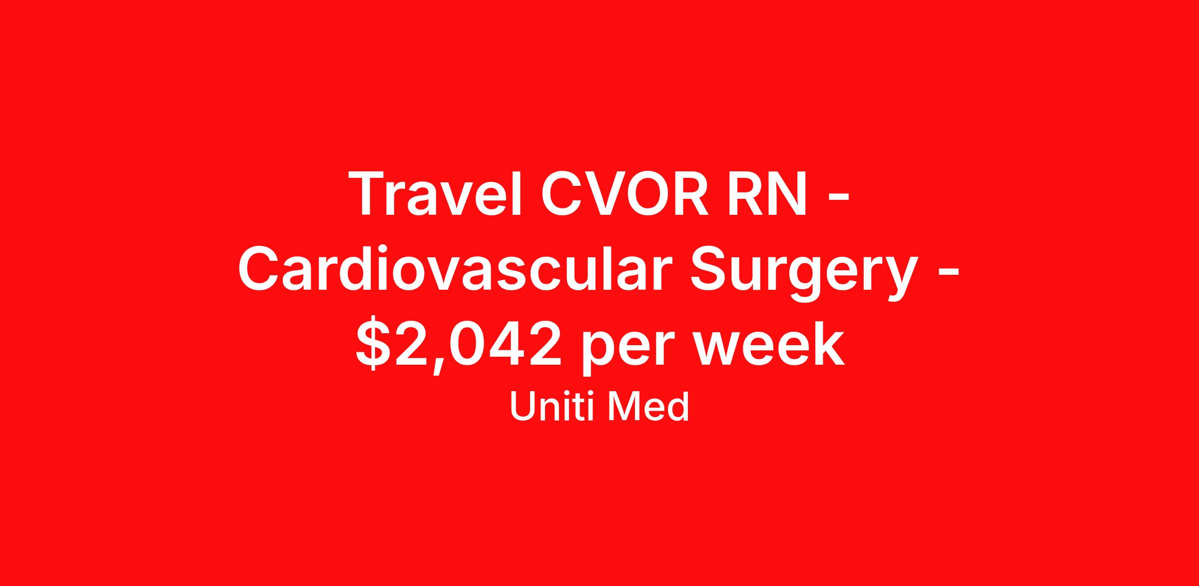 Travel CVOR RN - Cardiovascular Surgery - $2,042 per week