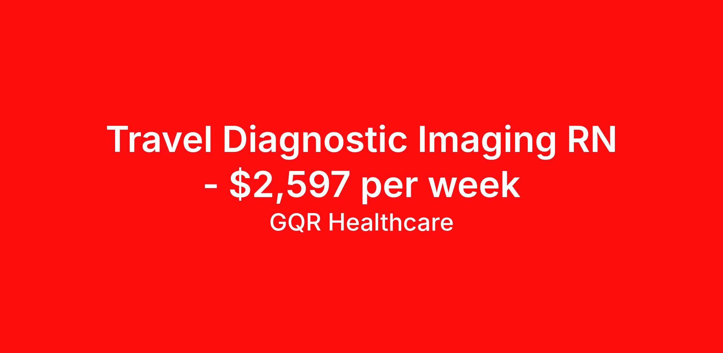 GQR Healthcare is seeking a travel nurse RN Radiology for a travel nursing job in Lake Forest, Illinois. Job Description & Requirements Specialty: Radiology Discipline: RN Start Date: 03/30/2026 Duration: 12 weeks 36 hours per week Shift: 12 hours, days Employment Type: Travel Contract - W2 Interventional | Radiology Registered Nurse (RN) Job Location: Lake Forest, Illinois Start Date: March 30, 2026 Profession: Registered Nurse (RN) Facility: Short Term Acute Care Estimated Pay: $2597.04 - $2692.04 Duration:12 weeks Specialty:Interventional | Radiology Shift: Day Shift Details: null Day Job Type: Travel *Estimated weekly pay includes projected hourly wages and weekly meal and lodging per diems for eligible clinicians based on nationally published GSA rates. Actual weekly pay and per diems may differ from the amount shown and are subject to change during an assignment. Benefits: Day 1 Insurance Cigna medical, MetLife dental and vision insurance License reimbursement for new licenses needed for each assignment Discounts with hotels and rental cars A dedicated recruiter and support team that will help you every step of the way to sure you start on time and have an exceptional experience Referral bonus up to $700 About the Company: Finding the right role is about more than just matching skills to a job—it’s about aligning with your goals, values, and the way you want to work. As an award-winning talent partner, we support healthcare professionals through every step of that process, offering meaningful opportunities, clear guidance, and long-term partnership. From our first conversation to your first day on the job (and beyond!), we’re here to help you move forward with confidence. GQR Job ID 788701. Pay package is based on 12 hour shifts and 36 hours per week (subject to confirmation) with tax-free stipend amount to be determined. Posted job title: Registered Nurse (RN) About GQR Healthcare GQR’s Healthcare team specializes in connecting experts within the industry to highly skilled healthcare professionals across the US market. In the competitive healthcare market, we recognize that the industry’s common goals of improved quality of care and patient outcomes are wholly reliant upon the professionals directly supporting these initiatives. Leveraging our extensive candidate network, we deliver continuity of care for the communities our partners serve to ensure the patient experience is of the highest quality. Through deep market specialization and a unique approach to talent acquisition, GQR Healthcare provides an unparalleled and personalized experience across all medical specialties in nursing and within diverse healthcare platforms across the industry.