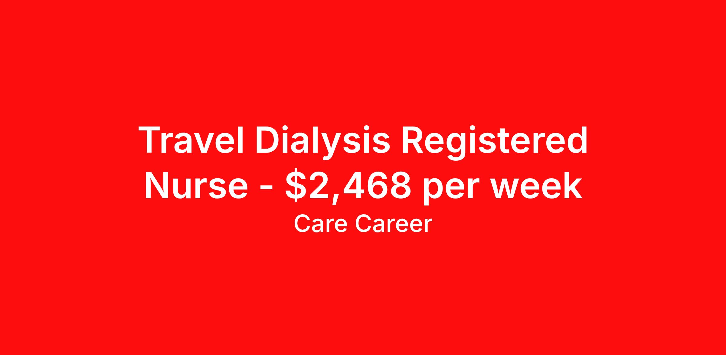 Travel Dialysis Registered Nurse - $2,468 per week