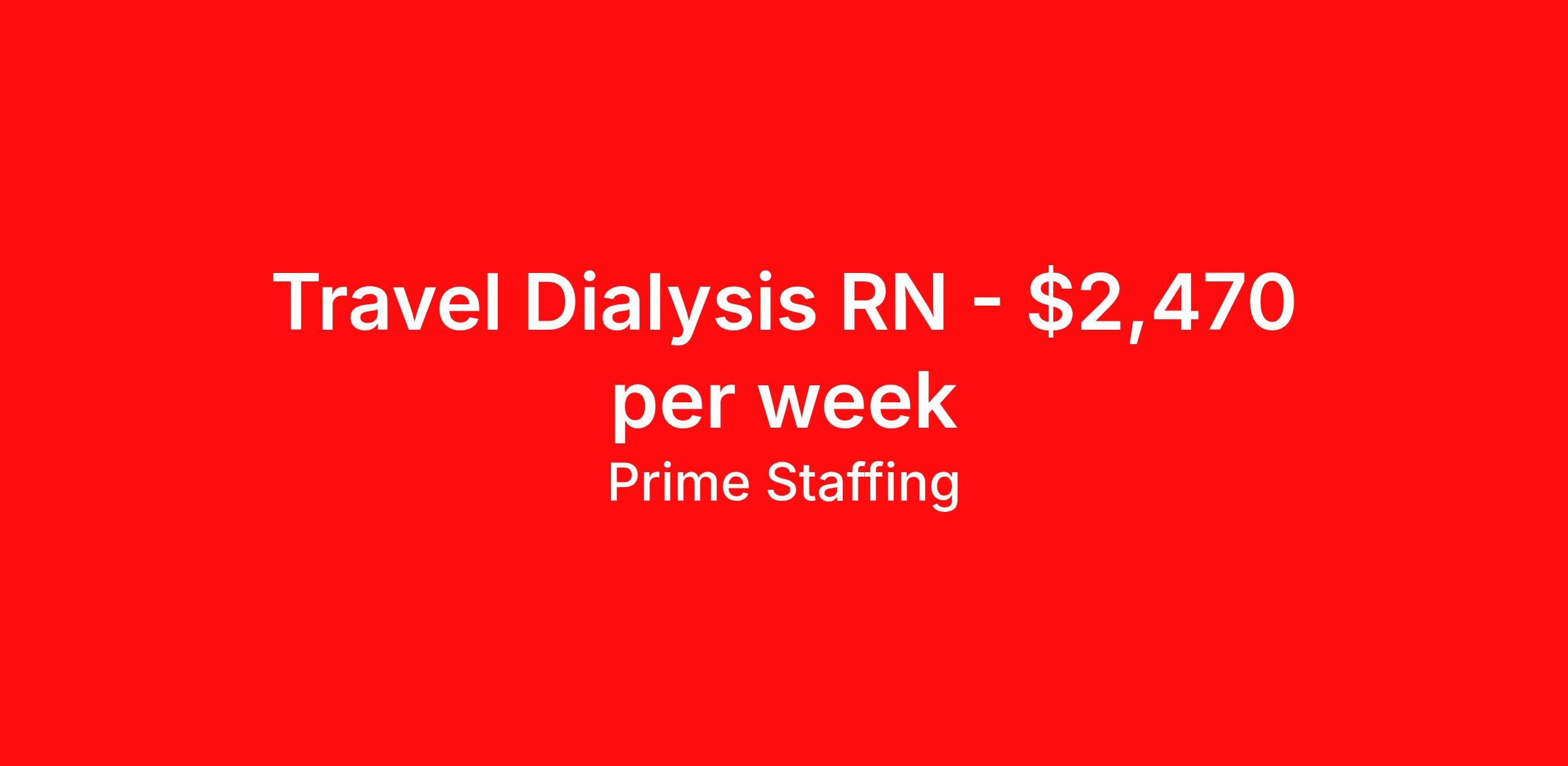 Prime Staffing is seeking a travel nurse RN Dialysis for a travel nursing job in Colchester, Vermont. Job Description & Requirements Specialty: Dialysis Discipline: RN Start Date: 03/26/2026 Duration: 4 weeks 40 hours per week Shift: 8 hours Employment Type: Travel Prime Staffing Job ID 36092493. Pay package is based on 8 hour shifts and 40.0 hours per week (subject to confirmation) with tax-free stipend amount to be determined. Posted job title: RN:Dialysis,08:00:00-16:00:00 About Prime Staffing At Prime Staffing, we understand the importance of finding the perfect fit for both our clients and candidates. Prime Staffing utilizes a unique matchmaking approach, providing the most qualified contingent staffing to our clients, and the most competitive contracts to our workforce. Our experienced team takes the time to get to know both our clients and candidates, their needs, and preferences, to ensure that each placement is a success. We offer a wide range of staffing services including temporary, temp-to-perm, and direct hire placements. Our extensive network of qualified candidates includes nurses, allied healthcare professionals, corporate support professionals and executives.