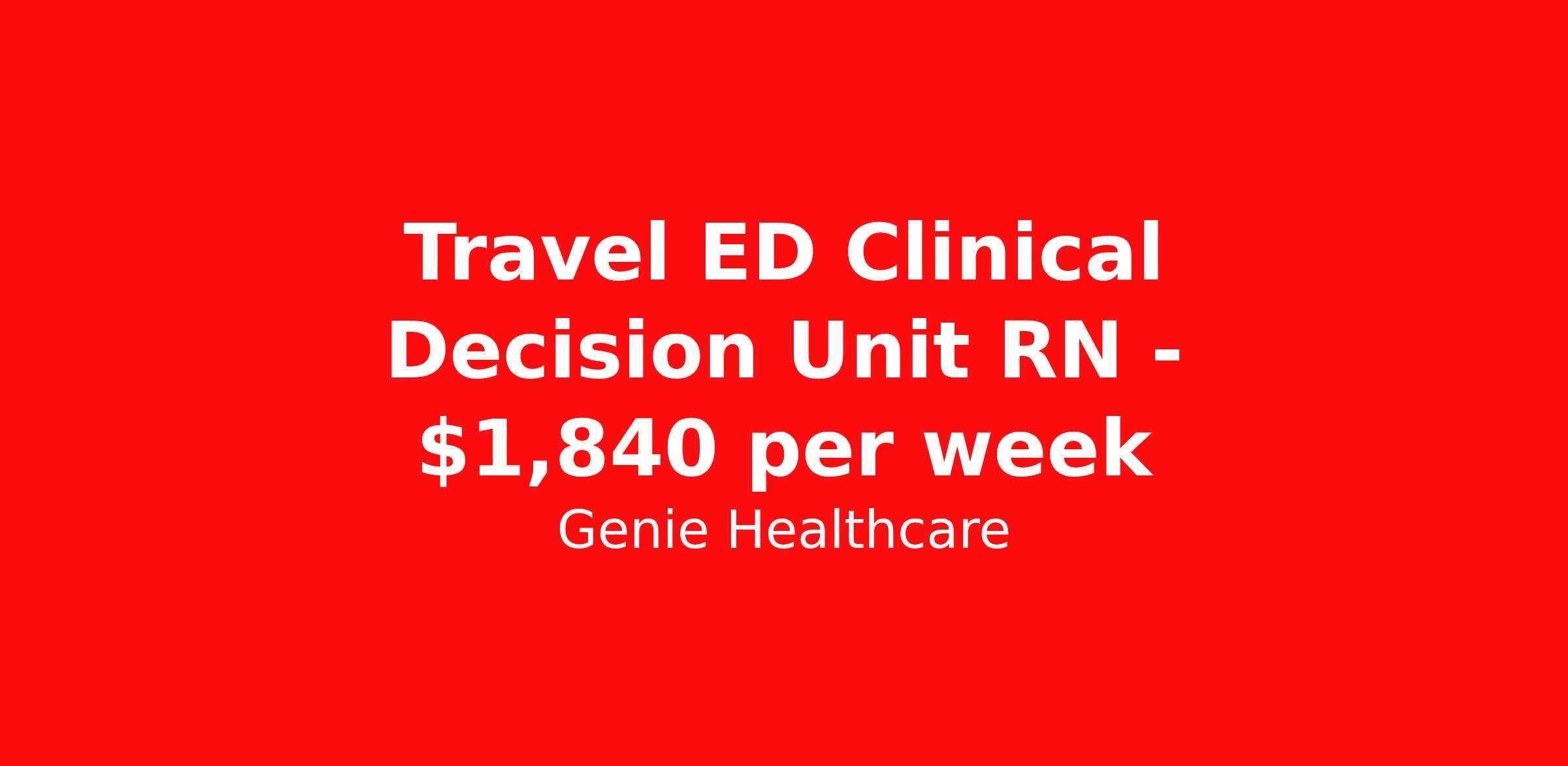 Genie Healthcare is seeking a travel nurse RN ED - Emergency Department for a travel nursing job in Cape Girardeau, Missouri. Job Description & Requirements Specialty: ED - Emergency Department Discipline: RN Start Date: 03/30/2026 Duration: 13 weeks 36 hours per week Shift: 12 hours, flexible Employment Type: Travel Genie Healthcare is looking for a RN to work in MedSurg for a 13 weeks travel assignment located in Cape Girardeau, MO for the Shift (3x12hr flex-Please verify shift details with recruiter , 19:00:00-07:00:00, 12.00-3). Pay and benefits packages are estimated based on client bill rate at time the job was posted. These rates are subject to change. Exact pay and benefits vary based on several things, including, but not limited to, guaranteed hours, client changes in bill rate, experience, etc. Benefits: Medical Insurance, Dental Insurance, Vision Insurance, 401(k) with company matching (50% up to 6% of what you contribute) Genie Healthcare Job ID 17912403. Pay package is based on 12 hour shifts and 36.0 hours per week (subject to confirmation) with tax-free stipend amount to be determined. Posted job title: RN:MedSurg,19:00:00-07:00:00 About Genie Healthcare Genie Healthcare is one of the fastest growing Nurse Travel Agencies in the USA. Genie serves hundreds of facilities and has over 4000 current travel RN contracts open at any given time. Genie provides travel RN’s flexibility, support, top pay scale, housing and the 1 rated, multi-state health insurance coverage. Genie Healthcare carries with it a commitment to providing a comprehensive level of service and quality care. Growing from a small team of eager recruiters to a company with satisfied clients in nearly every corner of the nation, delivering excellence in patient and customer care is the key to Genie’s success. The management team has 20 years of experience in workforce solutions and staffing in medical and non-medical fields, roles ranging from Clerical job to Cardiologist to software developer to CEO.