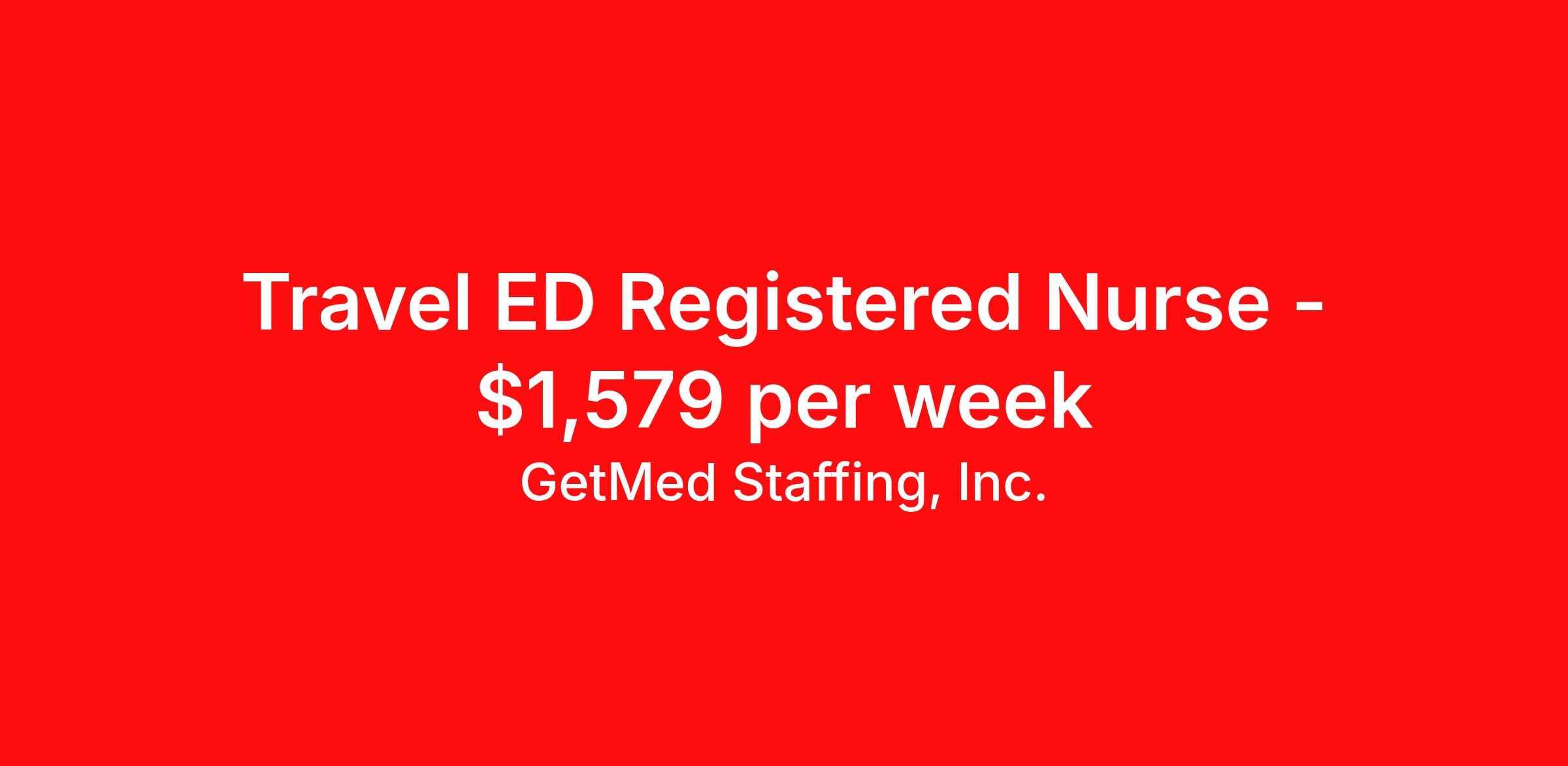 GetMed Staffing, Inc. is seeking a travel nurse RN ED - Emergency Department for a travel nursing job in Tuscaloosa, Alabama. Job Description & Requirements Specialty: ED - Emergency Department Discipline: RN Start Date: 04/13/2026 Duration: 13 weeks 36 hours per week Shift: 12 hours, nights Employment Type: Travel GetMed Staffing, Inc. Job ID 36203587. Pay package is based on 12 hour shifts and 36.0 hours per week (subject to confirmation) with tax-free stipend amount to be determined. Posted job title: RN:ER,19:00:00-07:00:00 About GetMed Staffing, Inc. We are a diversity owned company, specializing in healthcare recruiting services. We truly understand how important a healthcare travelers' relationship is with their recruiter, as well as our relationship is with our healthcare facilities. We recognize that the needs of our healthcare travelers can vary, and therefore we provide the personalized touch necessary to ensure a successful travel assignment each and every time. Our healthcare facilities and clients benefit from us putting our healthcare travelers first. GetMed Staffing is excited to be a leader within the industry by focusing on providing healthcare travelers with more choices and possibilities as they plan for their next healthcare travel assignment. Benefits Life insurance Medical benefits Dental benefits Vision benefits 401k retirement plan