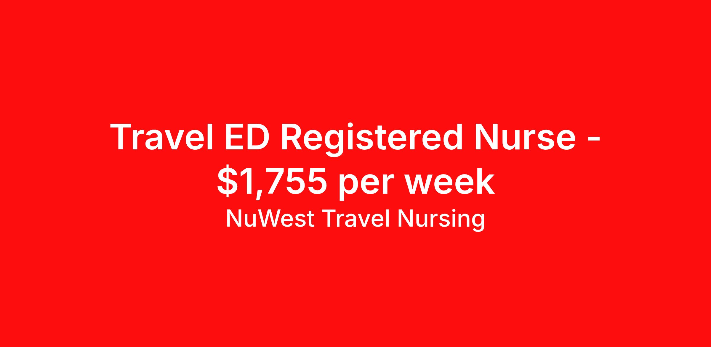 NuWest Travel Nursing is seeking a travel nurse RN ED - Emergency Department for a travel nursing job in Beachwood, Ohio. Job Description & Requirements Specialty: ED - Emergency Department Discipline: RN Duration: 26 weeks 36 hours per week Shift: 12 hours Employment Type: Travel We have a new assignment for RN - ED in Beachwood, OH and are interviewing ASAP. This is a travel assignment, 3x12 Nights position at a great facility. Pay Range: $1613.06 - $1897.72 Per Week Benefits include medical, dental, vision, 401K, weekly direct deposit, and more! NuWest Travel Nursing Job ID 251039. Pay package is based on 12 hour shifts and 36 hours per week (subject to confirmation) with tax-free stipend amount to be determined.