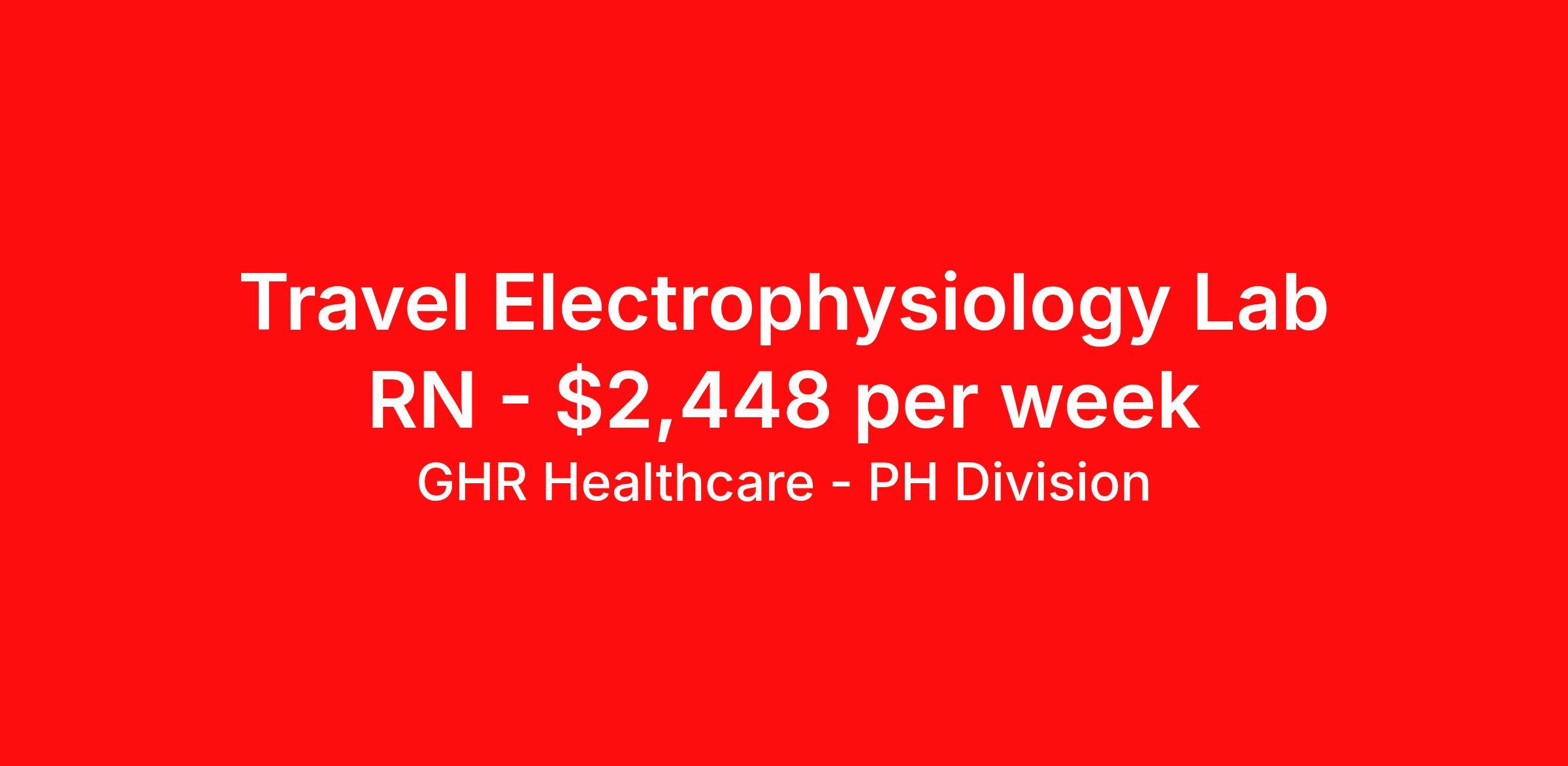 GHR Healthcare - PH Division is seeking a travel nurse RN Electrophysiology Lab for a travel nursing job in Fairfield, Ohio. Job Description & Requirements Specialty: Electrophysiology Lab Discipline: RN Start Date: 04/06/2026 Duration: 12 weeks 36 hours per week Shift: 12 hours Employment Type: Travel Planet Healthcare Job ID 76422073. Pay package is based on 12 hour shifts and 36 hours per week (subject to confirmation) with tax-free stipend amount to be determined. About GHR Healthcare - PH Division For over 30 years, GHR Healthcare has been the bridge between healthcare professionals and the facilities that need them nationwide. We're committed to uncovering your ideal fit, supported by GHR's dedication to competitive compensation, transparent communication, and a devoted team that genuinely cares about your career journey. You can trust us to stand by your side as your advocate, confidante, and partner in advancing your career. At GHR, care and consideration are at the heart of everything we do. Visit ghrhealthcare.com to learn more.