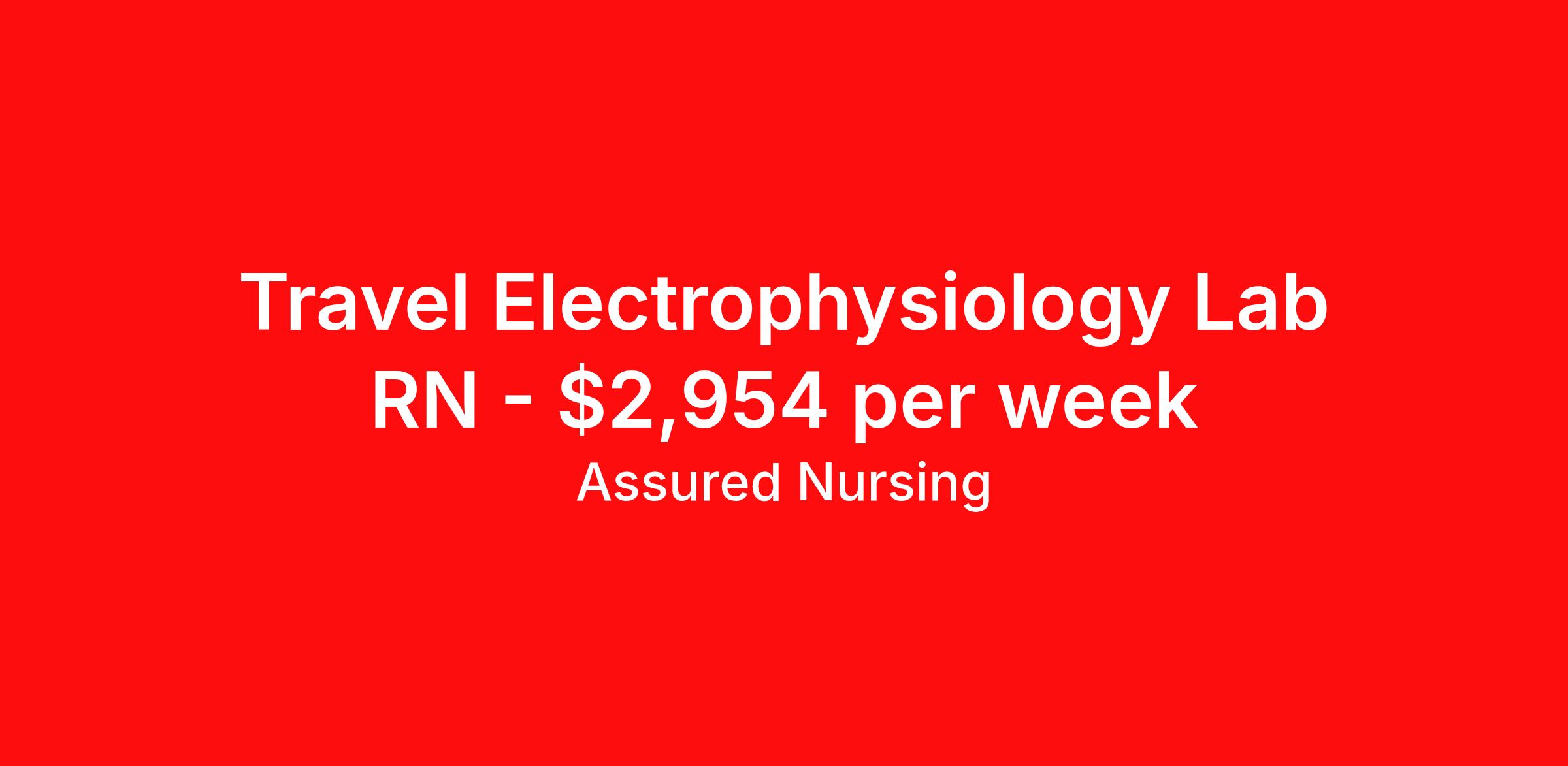 Assured Nursing is seeking a travel nurse RN Electrophysiology Lab for a travel nursing job in Syracuse, New York. Job Description & Requirements Specialty: Electrophysiology Lab Discipline: RN Start Date: 04/05/2026 Duration: 13 weeks 40 hours per week Shift: 10 hours, days Employment Type: Travel Electrophysiology Lab RN 13 weeks 40 hrs Varied Shifts 4-10 hour shifts (7-1730) 5- 8 hour shifts (7-1530) EP experience required No Weekends No Holidays No Call BLS required ACLS required EHR Epic Assured Nursing Job ID 35835715. Pay package is based on 10 hour shifts and 40.0 hours per week (subject to confirmation) with tax-free stipend amount to be determined. Posted job title: RN:Electrophysiology,07:00:00-17:00:00 Benefits Weekly pay Holiday Pay 401k retirement plan Referral bonus Medical benefits Dental benefits Vision benefits