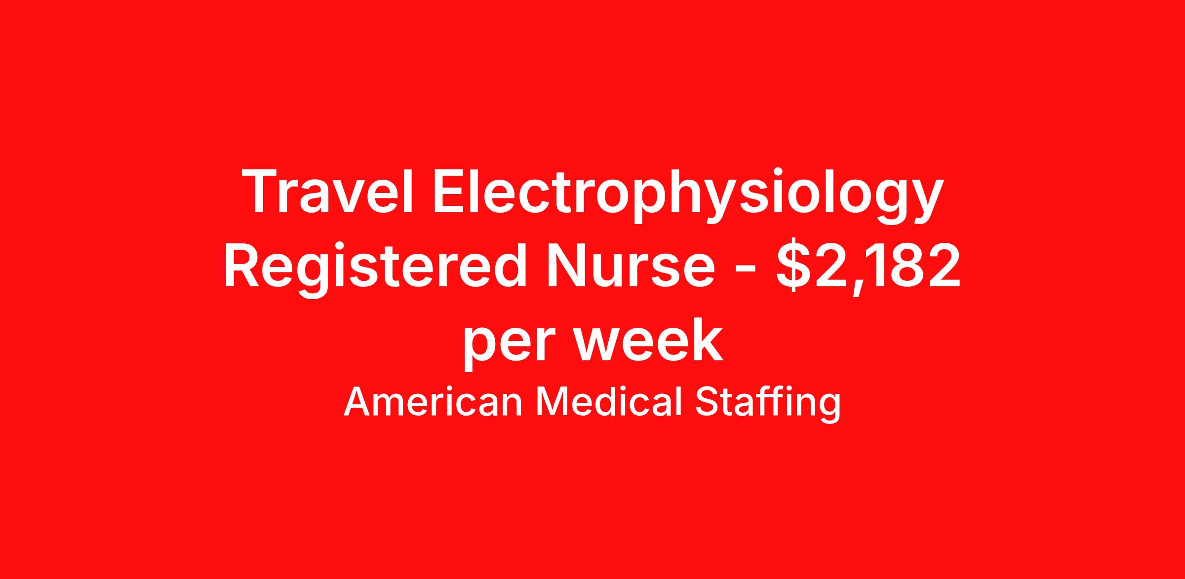 American Medical Staffing is seeking a travel nurse RN Electrophysiology Lab for a travel nursing job in Winchester, Virginia. Job Description & Requirements Specialty: Electrophysiology Lab Discipline: RN Start Date: 03/30/2026 Duration: 13 weeks 36 hours per week Shift: 12 hours, days Employment Type: Travel We’re living in the new normal. Lives and careers look different today. So why shouldn’t you have a role that delivers excitement, fewer restrictions, and brings you closer to loved ones? At American Medical Staffing (AMS), we believe in supporting the pioneers who embody the sense of adventure each new placement brings and we’re looking for a RN: Cath Lab for our Hospital contract assignment. Job Title : RN: Cath Lab Location : Winchester, Virginia Pay Range : Competitive, Negotiable, with Weekly Pay Schedule : 12-Hour Days, 07:00:00-19:00:00, 12.00-3 Contract Length : 13 Weeks Requirements : · 2 years of experience as a RN · Qualified applicants MUST have at least 2 years of experience in the Cath Lab · Valid RN license · Be willing to obtain Virginia licensure Why Choose American Medical Staffing? · Day-One Benefits : Medical, dental, and vision plans with no waiting period. · Wellness PTO : Build 1 or 2 weeks of paid time off into your contract. · Hotel Discounts : Save up to 60% on hotel bookings with access to 700,000 discounted properties. · Loyalty Program : Earn financial incentives automatically based on hours worked and assignment type. · Referral Program : $500 for you and $500 for each referral after 450 hours—no limits. · Working Advantage : Access exclusive discounts on retail, entertainment, and travel. · Scrub Discount : 20% off all scrubs through our customized AMS store. · Retirement Plans : 401(k) options to help you plan for the future. · Compliance & Credentialing Support : Let us handle the logistics so you can focus on patient care. Responsibilities · Deliver specialized care to patients across a variety of acute and subacute units. · Work closely with a multidisciplinary team of healthcare professionals to provide comprehensive and compassionate care. · Monitor patient conditions, administer treatments and document outcomes. · Advocate for the best possible patient experience while supporting recovery, safety, and continuity of care. Apply now to take the next step in your journey. American Medical Staffing is an Equal Employment Opportunity Employer and does not discriminate on the basis of race, color, religion, sex, national origin, sexual orientation, gender identity, disability, age, or any other non-merit factor. American Medical Staffing Job ID 109088. Pay package is based on 12 hour shifts and 36.0 hours per week (subject to confirmation) with tax-free stipend amount to be determined. Posted job title: RN:Cath Lab,07:00:00-19:00:00 About American Medical Staffing American Medical Staffing is a staffing agency headquartered in Baltimore, MD. Our goal is to CREATE an extraordinary experience for our health care professionals. Our roots are nurse owned and operated so we know what clinicians want - lots of options, a smooth and informed placement process, competitive and accurate pay, great customer service and responsiveness to requests, and advocacy when there is an issue. When AMS was founded in 2001, we started our company with a mission to be a better agency than our competitors. We have always put a heavy emphasis into what is best for our employees, not necessarily just our clients or our company. You are not an expense as you may be to a hospital; you are an asset. We take employee advocacy seriously; you are not just a number to us. The end result is that you don`t work for us; we work for you. Since starting in Baltimore, MD, we continue to grow throughout the country. Check out our industry leading reviews on Google and Indeed to see how much our clinicians enjoy working with us! · Benefits: AMS offers an array of benefits for any employee working 30 hours or more! Those eligible employees who choose to participate will pay the premiums with deductions from their pre-tax earnings. We offer a complete benefits package including Health Insurance, 401K with up to 2% match, Life, Vision, and Dental. From health and wellness support, financial or legal needs, or help with life's everyday challenges, our Employee Assistance Program provides you with resources, services and discounts to help you manage your unique concerns and save time, energy and money. We also offer additional Employee Perks that you can enjoy as an AMS employee: Scrubin – Uniform Discounts Working Advantage – unlimited access to thousands of exclusive discounts and special offers nationwide for theme parks, shows, tours, attractions, sports, concerts, hotels, rental cars, retail gift cards, movie tickets and much more Hotel Engine - Save up to 60% when booking hotel rooms, with access to more than 700,000 deeply discounted hotels worldwide. Discounted Pet Insurance Wellness Program, including fitness, nutrition and financial wellness Betterhelp - 1 month of free therapy, followed by a discounted rate for our Healthcare Professionals and their family members. Win Win Referral Bonus - $500 for you, and $500 for them! Benefits 401k retirement plan Life insurance Medical benefits Dental benefits Vision benefits