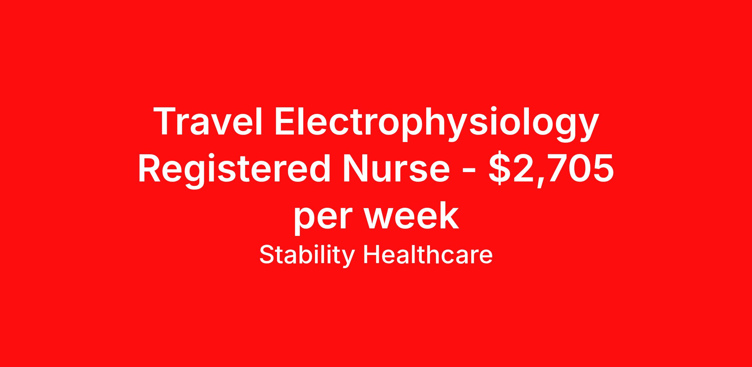 Stability Healthcare is seeking a travel nurse RN Electrophysiology Lab for a travel nursing job in Atlanta, Georgia. Job Description & Requirements Specialty: Electrophysiology Lab Discipline: RN Start Date: 04/20/2026 Duration: 13 weeks 40 hours per week Shift: 10 hours, days Employment Type: Travel Stability Healthcare is looking for a EP RN contract position in Atlanta, GA. An electrophysiology nurse is a highly specialized medic who works with other professionals in a cardiology lab to perform diagnostics and interventional procedures to patients who have electrical conduction problems. Electrophysiology is a highly technical area that requires individuals who possess advanced skills and adequate training to offer critical care to patients. *$600 travel bonus *Day 1 health insurance with United Healthcare *PTO plan start accruing on day 1, use during contract or cash out at the end! *Guaranteed stipend if facility calls you off *Extra hour bonus earn an additional hourly bonus for working over your weekly contracted hours Stability Job ID 826825. Pay package is based on 10 hour shifts and 40 hours per week (subject to confirmation) with tax-free stipend amount to be determined. Posted job title: EP About Stability Healthcare Stability Healthcare was founded in 2009, with the mission of becoming the best Travel Nursing Agency in California. We have been rated one of the top travel nursing agencies and offer our nurses the highest paying travel nursing jobs available. We have access to the best travel assignments from 1000’s of facilities. You can start the year off in sunny California, spend the Spring in the Colorado Rockies, enjoy the Summer in the Mid-West, experience the change of seasons in Boston and New York, and hit the beaches of Florida in the winter. Our Nurses work in the best hospitals and health systems in the country. Benefits Guaranteed Hours Benefits start day 1