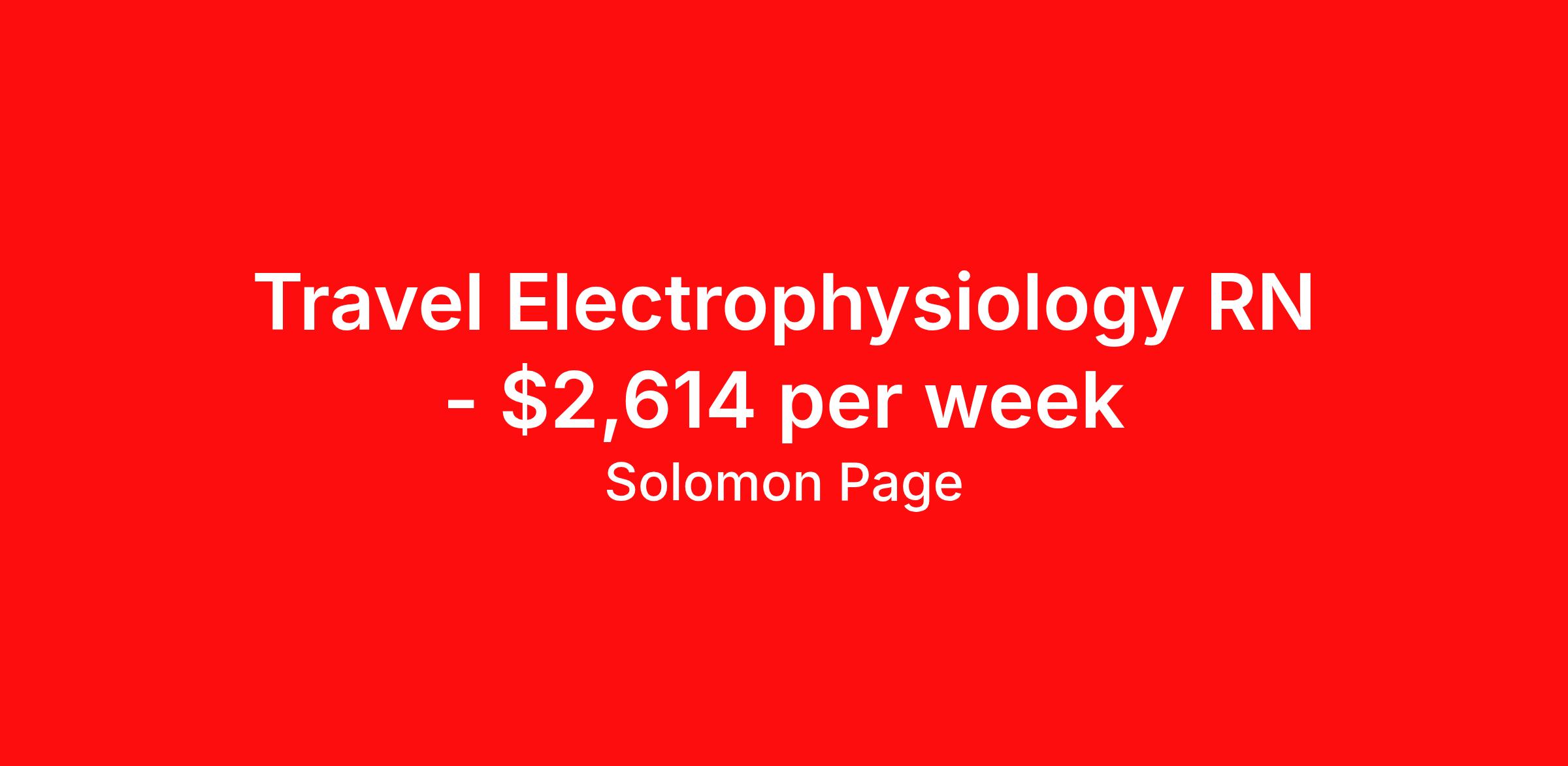 Solomon Page is seeking a travel nurse RN Electrophysiology Lab for a travel nursing job in St. Petersburg, Florida. Job Description & Requirements Specialty: Electrophysiology Lab Discipline: RN Start Date: 04/06/2026 Duration: 13 weeks 40 hours per week Shift: 8 hours, days Employment Type: Travel Our client is looking to add a Registered Nurse to their team. Job Details: Location: St. Petersburg, Florida Duration: 13 Weeks Start Date: 04/06/2026 Shift: 5x8 Days Estimated Gross Weekly Pay: 2614 Qualifications: Current Florida license Excellent interpersonal skills including patience, empathy, and compassion Effective communication skills, including active listening, writing, speaking and reading comprehension Fast and adaptive problem-solving abilities Ability to stand for long periods of time If you meet the required qualifications and are interested in this role, please apply today. Why Work with Us The success of Solomon Page is defined by our people. Offering a comprehensive benefits package, travel nurses have immediate access to medical coverage and ReviveHealth virtual care. Additionally, you are offered access to dental and vision coverage, commuter benefits, a 401(k) plan, flexible spending, referral bonuses, ongoing training, and more. As an ESOP company, Solomon Page offers an employee stock ownership plan to all consultants. As a member of our traveler community, you will join a nurturing culture that fosters your career goals. Solomon Page can connect you with your next opportunity – whether it is in your hometown, or you are looking to travel to a new destination. About Solomon Page Healthcare & Medical Staffing Accredited by the Joint Commission with the Gold Seal of Approval, Solomon Page prides ourselves in developing long-term relationships with healthcare providers based on trust and respect. Our experienced Healthcare and Medical Staffing experts are committed to providing safe and quality patient care through our wide network of travel nurses, locum tenens, and allied resources. For more information and additional healthcare opportunities, visit: solomonpage.com and connect with Solomon Page on Instagram, Facebook, Twitter, LinkedIn, and TikTok. 422166 Solomon Page Job ID 432850. Pay package is based on 8 hour shifts and 40 hours per week (subject to confirmation) with tax-free stipend amount to be determined. Posted job title: nurse - rn - ep | st. petersburg, florida About Solomon Page Founded in 1990, Solomon Page has grown to be a leader in the staffing industry. As a member of our healthcare provider community, you will join a nurturing culture that fosters your career goals. We have the network and resources to connect you with your next opportunity – whether it is in your hometown, or you are looking to travel to a new destination. Accredited by the Joint Commission with the Gold Seal of Approval, Solomon Page prides itself in developing long-term relationships with healthcare providers based on trust and respect. Headquartered in New York with offices throughout the United States our experienced healthcare and medical staffing experts are committed to providing safe and quality patient care through our wide network of travel nurses, locum tenens, and allied resources. For more information and additional healthcare opportunities, visit: solomonpage.com /healthcare and connect with us on Facebook , Twitter , Instagram , Tik Tok , and LinkedIn. ReviveHealth Virtual Care: Available immediately. Receive free, 100% company paid, virtual care access. Upon commencement of your employment, Solomon Page offers automatic enrollment into ReviveHealth, which offers concierge, membership-based access to virtual primary care, urgent care, mental health therapy, a vision program, and prescription medications. Medical Coverage : Available immediately . Whether you are looking to enroll in single or family insurance, you have immediate access to quality coverage. Dental Coverage : Available the 1st of the month after your hire date . We offer dental insurance to you and your dependents. Vision Coverage : Available the 1st of the month after your hire date . We offer vision insurance to you and your dependents. Commuter Benefits: Available the 1st of the month after your hire date . Set aside pre-tax money to pay for public transportation. 401K Plan: Associates can enroll in the 401K plan after they have worked 1000 hours. ESOP Benefits: As an ESOP company, Solomon Page offers an employee stock ownership plan. Referral Bonus: A cash bonus is offered for referring a candidate to Solomon Page who gets placed. Training & Support: Training programs and ongoing career coaching and support is offered to consultants. Benefits Medical benefits Dental benefits Vision benefits 401k retirement plan Referral bonus