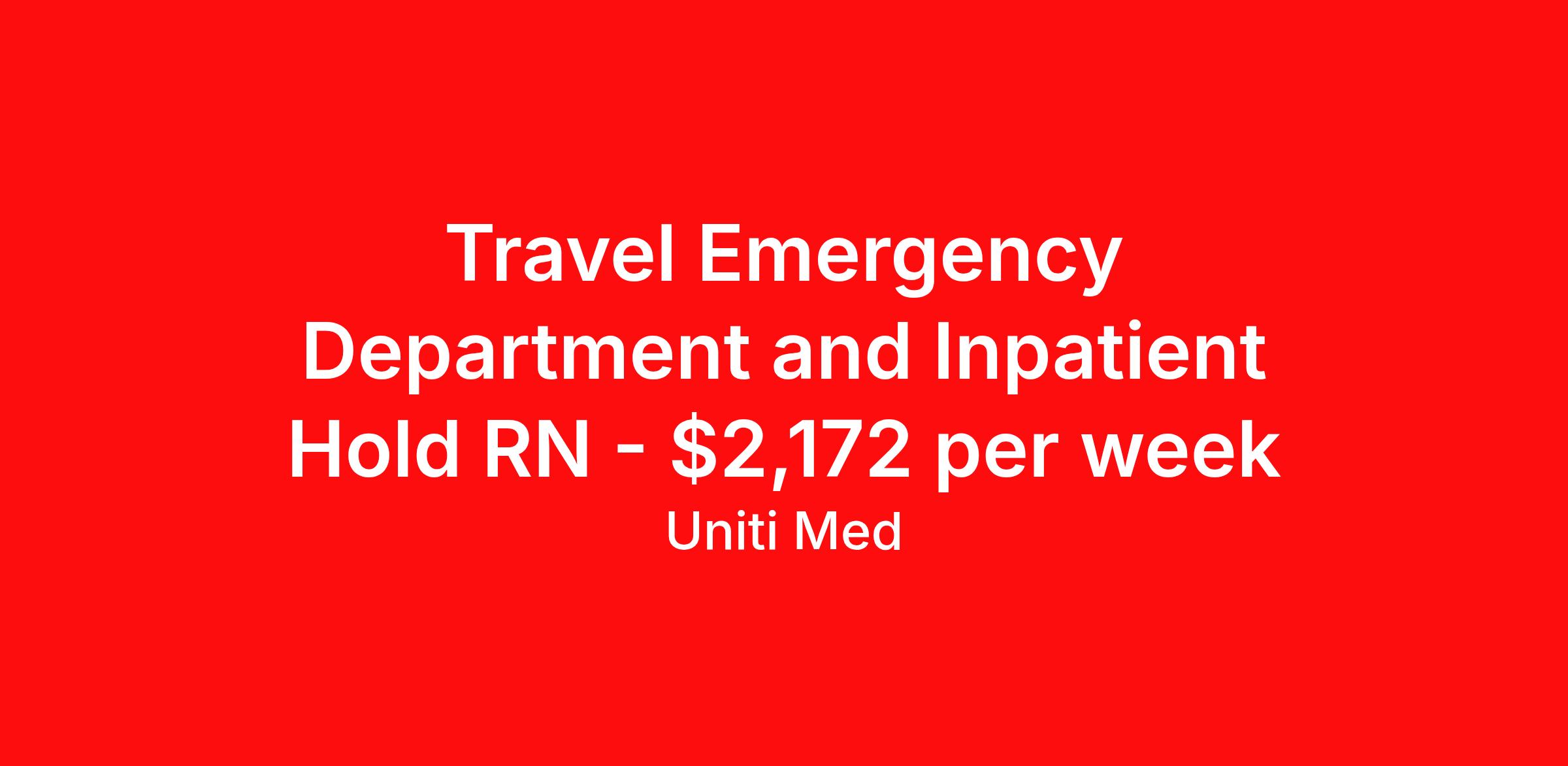 Travel Emergency Department and Inpatient Hold RN - $2,172 per week