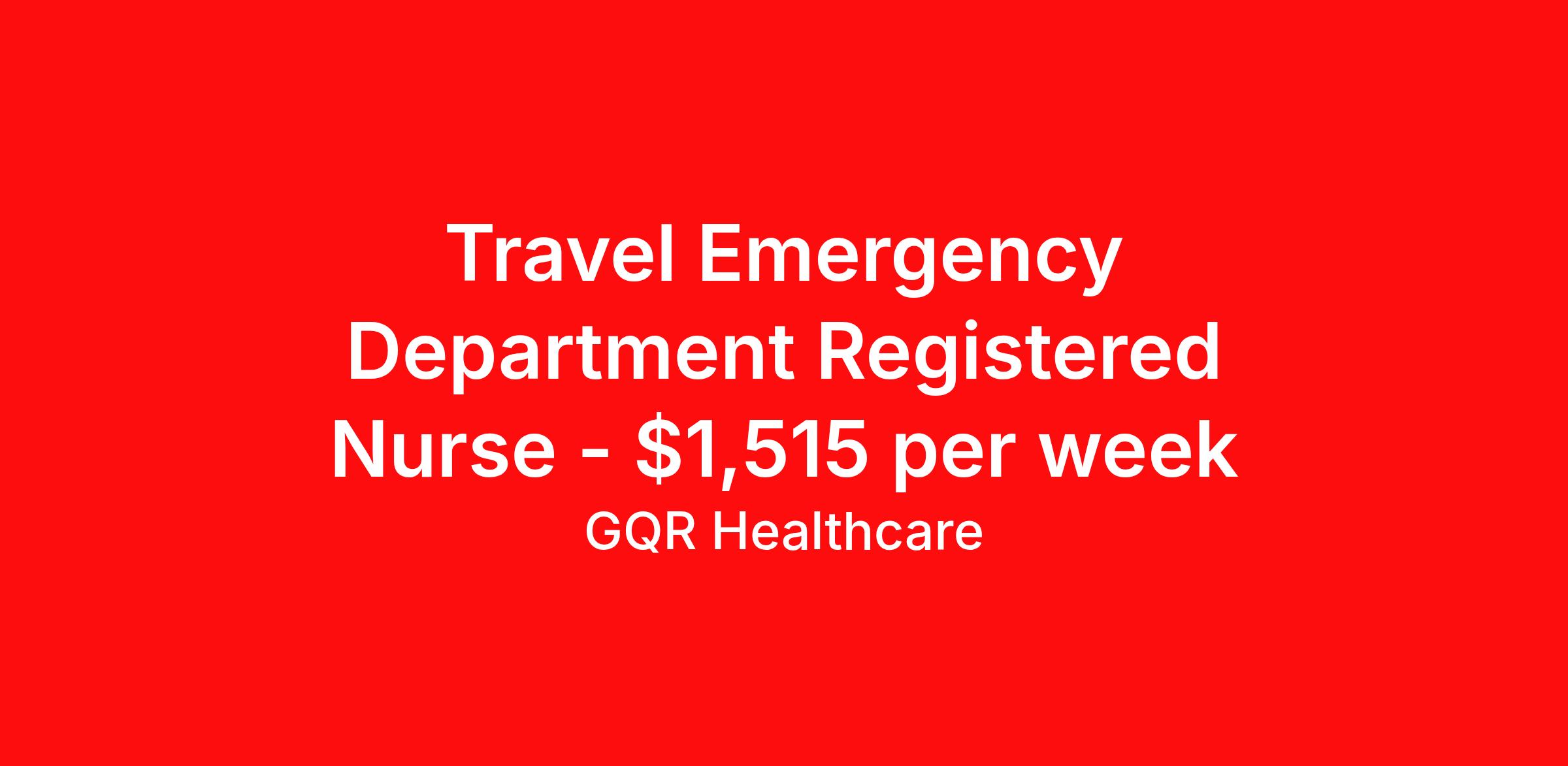 Travel Emergency Department Registered Nurse - $1,515 per week