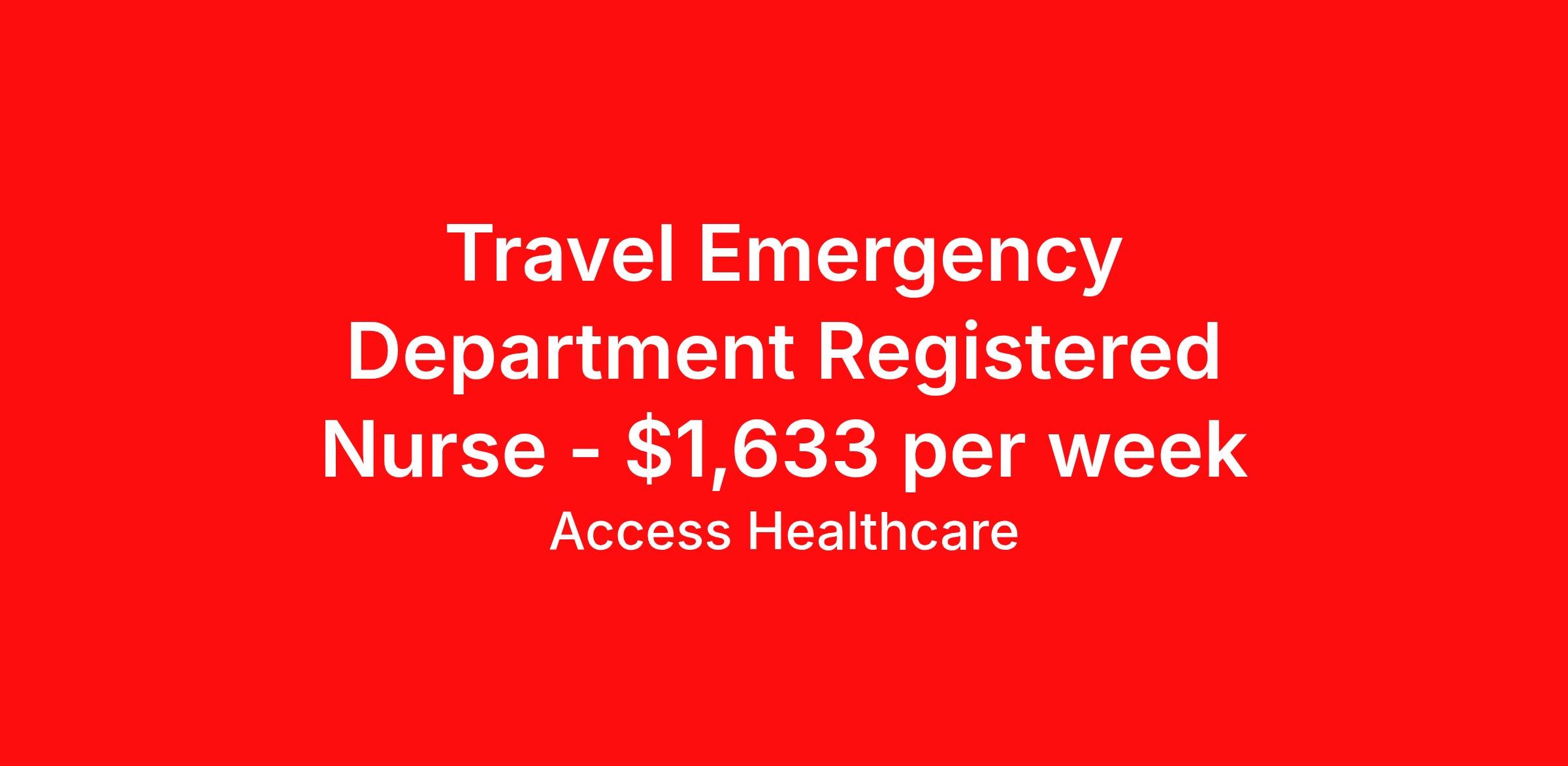 Access Healthcare is seeking a travel nurse RN ED - Emergency Department for a travel nursing job in Bentonville, Arkansas. Job Description & Requirements Specialty: ED - Emergency Department Discipline: RN Start Date: 04/06/2026 Duration: 13 weeks 36 hours per week Shift: 12 hours, nights Employment Type: Travel Access Healthcare Job ID 76421164. Pay package is based on 12 hour shifts and 36 hours per week (subject to confirmation) with tax-free stipend amount to be determined. About Access Healthcare Access Healthcare aims to provide superior service to our nursing family by providing around the clock support, competitive pay packages and an unmatched benefits package! Unlike other agencies, we offer a true family feel and work with you to find the placement that is right for you. We offer one of the top leading pay packages in the industry and we are ready to get you the money you deserve! Access Healthcare was founded by two travel nurses, Danielle and Diego, who had a dream and a shared vision of creating an agency which all nurses would want to work with. Our passion has led us to where we are today as one of the top 10 agencies in our home state of New Jersey, with access to contracts in all 50 states! We encourage you to join our team and we cannot wait to get to know you!