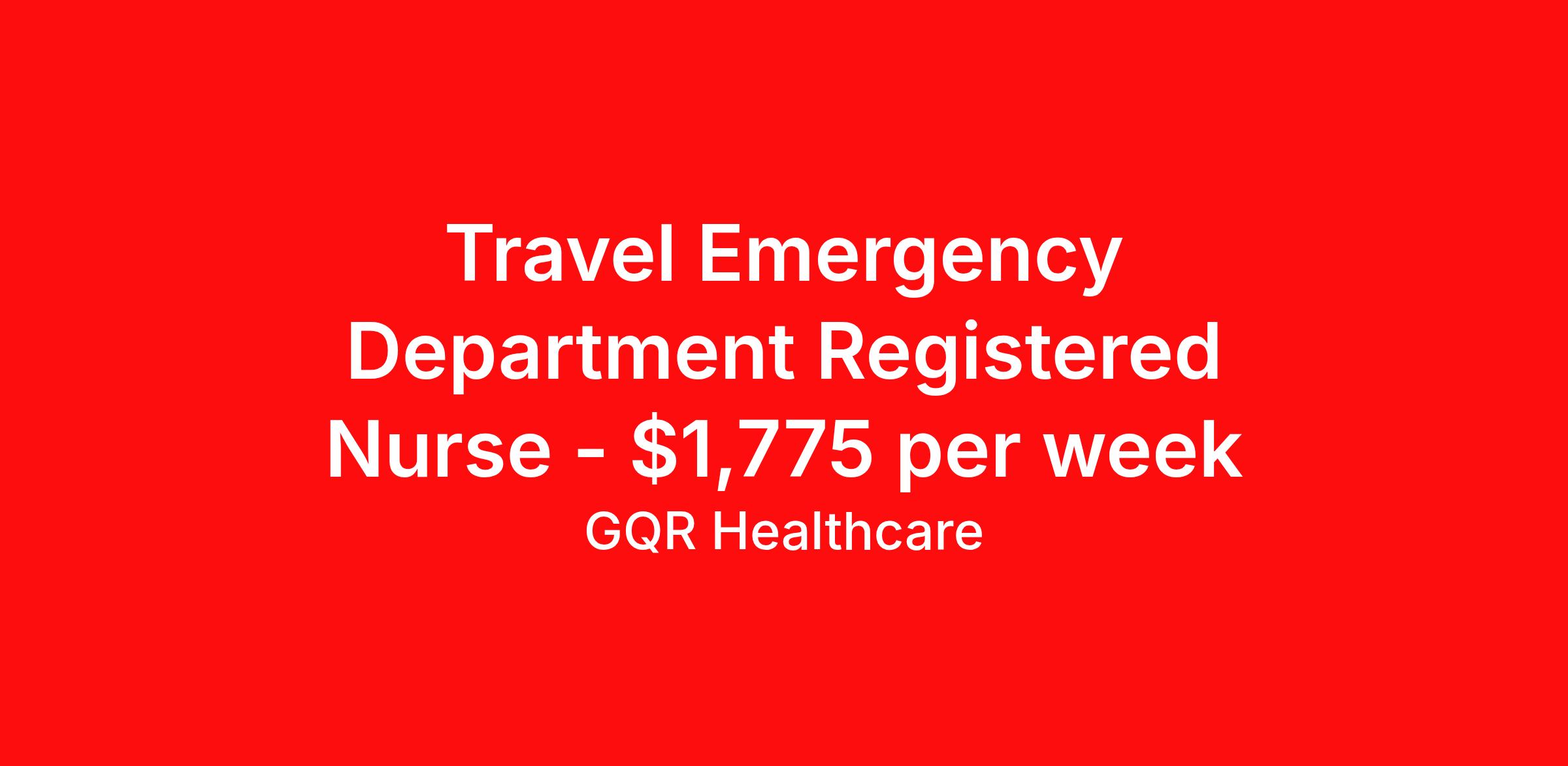 Travel Emergency Department Registered Nurse - $1,775 per week