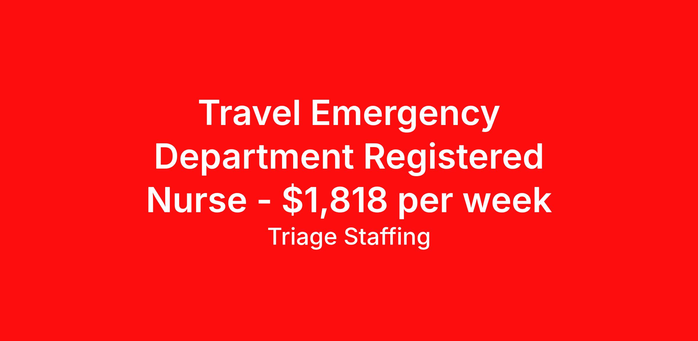 Travel Emergency Department Registered Nurse - $1,818 per week