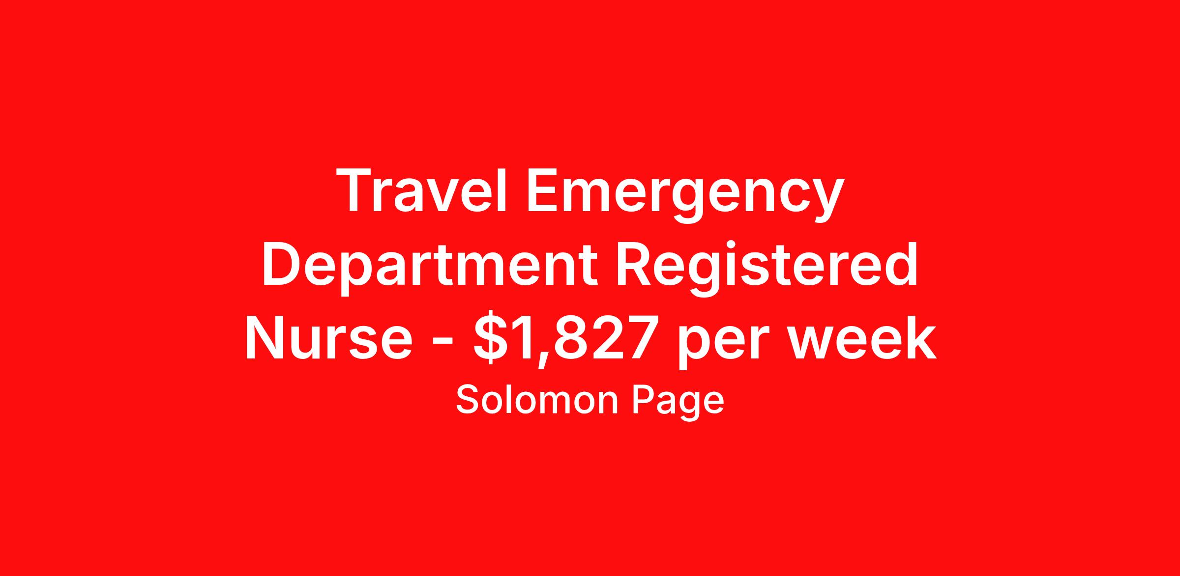 Travel Emergency Department Registered Nurse - $1,827 per week