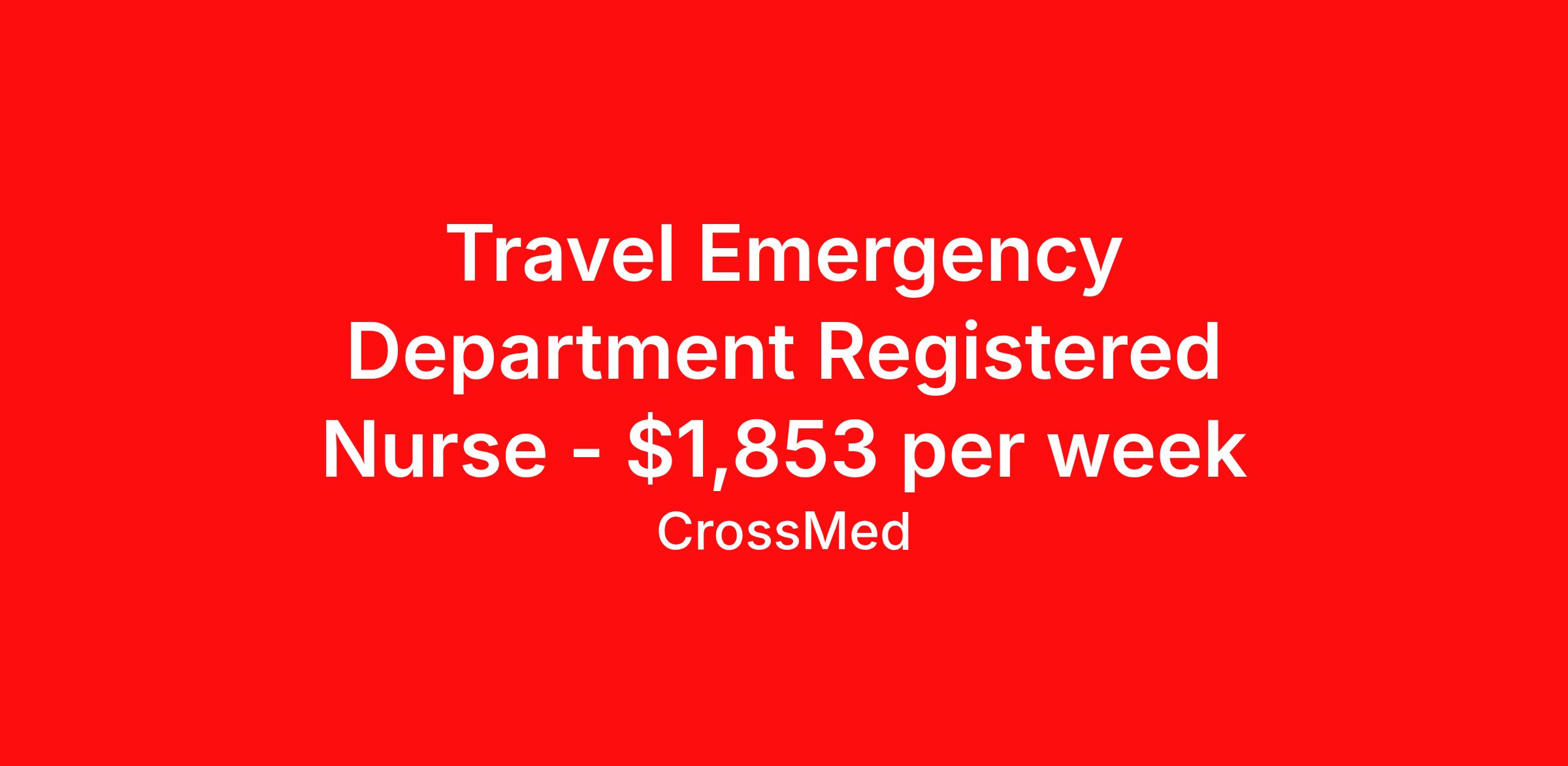 Travel Emergency Department Registered Nurse - $1,853 per week