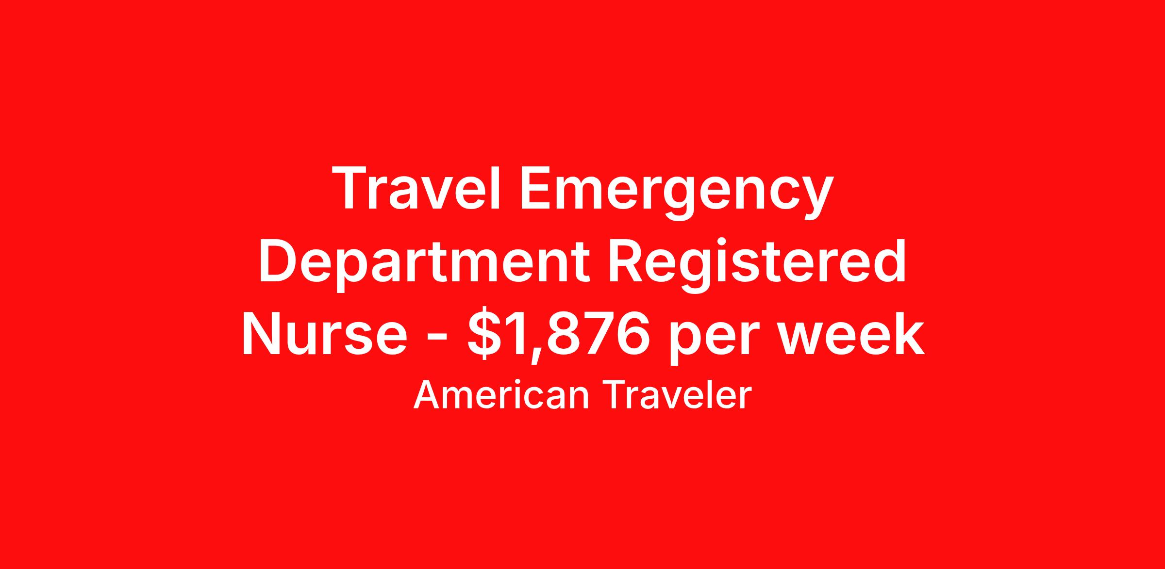 American Traveler is seeking a travel nurse RN ED - Emergency Department for a travel nursing job in Statesboro, Georgia. Job Description & Requirements Specialty: ED - Emergency Department Discipline: RN Start Date: 04/13/2026 Duration: 13 weeks 36 hours per week Shift: 12 hours, evenings Employment Type: Travel Assignment Overview Shift: Evenings, 3x12hrs Hours: 36 hrs/wk Start Date: Apr 13, 2026 Length: 13 weeks Openings: 1 Description American Traveler is seeking an experienced travel RN for a night shift Emergency Department position in Statesboro, GA, requiring a minimum of 2 years of ED experience and at least 2 prior completed travel assignments. Details Emergency Department setting with 29 beds plus 8 hallway beds Patient ratio of 1:4 Night shift schedule, 5:00 PM – 5:00 AM 13-week contract EMR: Cerner (experience preferred) One major and one minor holiday coverage may be required Schedule will be arranged as close/block as possible while meeting weekend requirements Requirements Active GA or Compact RN license required Required certifications: BLS, ACLS, PALS, and ESI Level 5 training — no certifications may expire within the first 30 days of the assignment start date TNCC preferred Minimum 2 years of recent Emergency Department RN experience required At least 2 prior travel assignments successfully completed required Cerner EMR experience preferred Valid driver's license required US Social Security Number required Candidates must not have worked as permanent staff at any CHS facility within the past 2 years No gaps in work history of 90 days or more within the past 12 months Additional Information Responsible for delivering patient care through assessment, diagnosis, planning, implementation, and evaluation using the Nursing Process Collaborates with other professional disciplines to ensure effective patient care delivery and achievement of desired patient outcomes Demonstrates critical thinking, clinical leadership, and delegation of patient care priorities based on staff education and experience Maintains clinical competencies through continuing education Navy scrubs required RTO requests must be less than one week in duration Candidates must reside more than 50 miles from the facility to be eligible for this position First-time travelers are not eligible for this position — a minimum of 2 completed travel assignments is required American Traveler Job ID P-686561. Pay package is based on 12 hour shifts and 36 hours per week (subject to confirmation) with tax-free stipend amount to be determined. Posted job title: Travel RN - Emergency Dept About American Traveler With over 25 years of experience, American Traveler has established a reputation for outstanding customer service. Our team ensures a smooth, worry-free experience for those starting on or expanding their travel nursing and allied careers. With thousands of travel nursing and allied jobs nationwide, our attentive and approachable recruiters find positions that align perfectly with your career aspirations and personal requirements. American Traveler offers exceptional benefits, including premium medical, dental, vision and life insurance beginning day one of your assignment, generous 401(k) match, substantial housing stipends, and more. Additionally, with 24/7 support and access to our in-house clinicians, you are assured confidence and comfort throughout your assignment. With our team behind you, you can relax and enjoy a rewarding travel career.