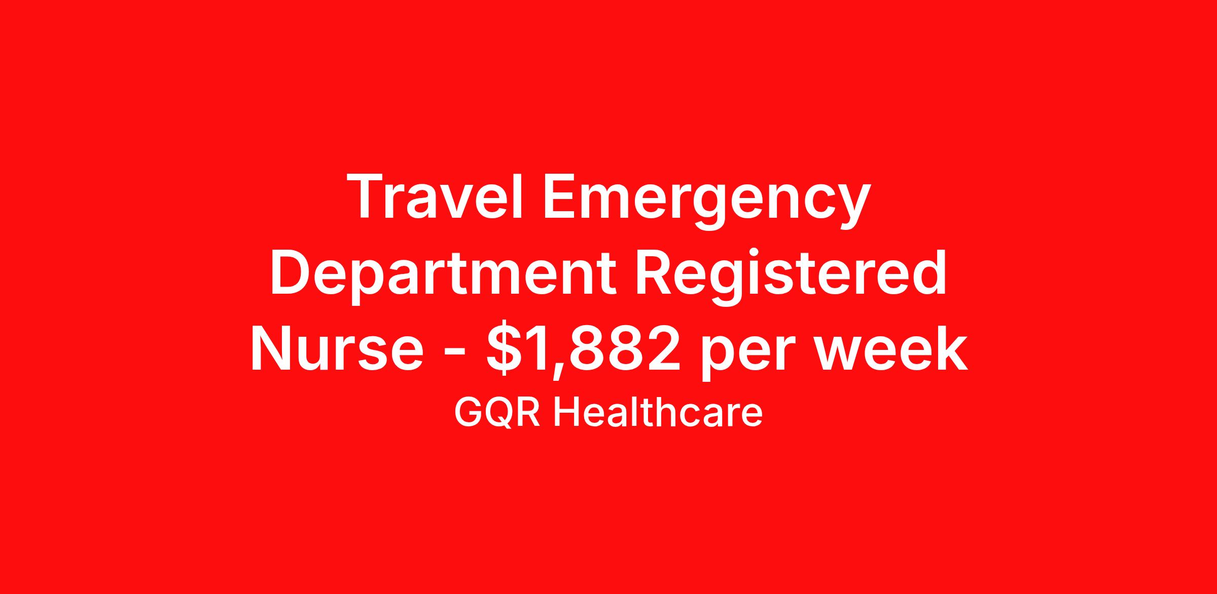 Travel Emergency Department Registered Nurse - $1,882 per week