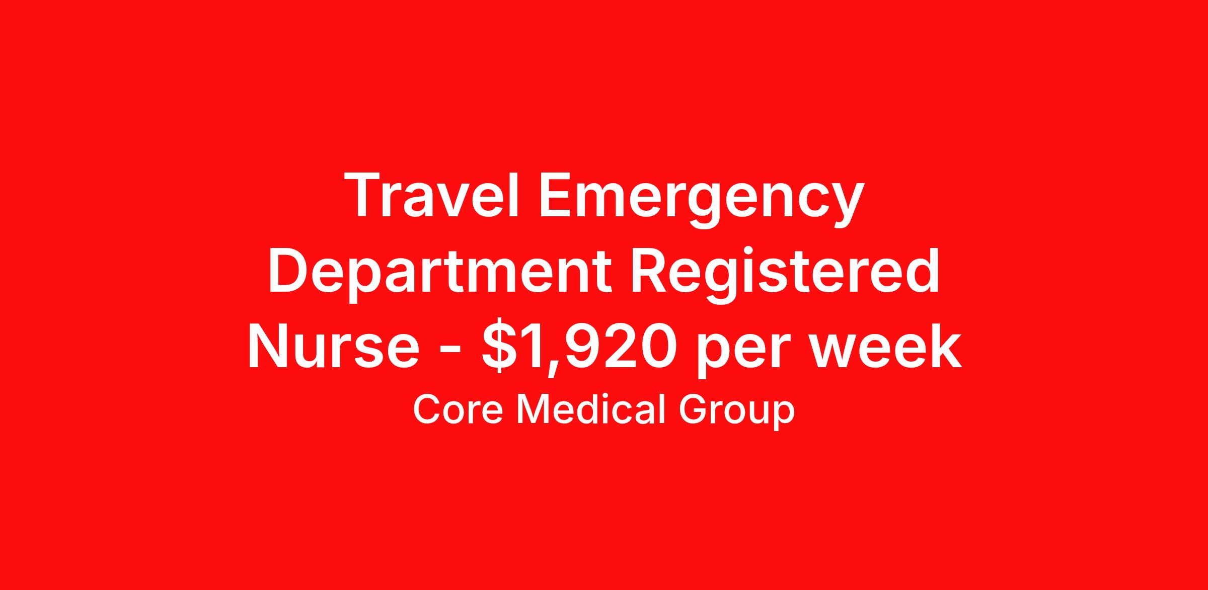 Core Medical Group is seeking a travel nurse RN ED - Emergency Department for a travel nursing job in Lewiston, Idaho. Job Description & Requirements Specialty: ED - Emergency Department Discipline: RN Start Date: 04/06/2026 Duration: 13 weeks 36 hours per week Shift: 12 hours Employment Type: Travel Client in ID seeking Registered Nurse: Emergency Room for the following shift(s): Nights We are looking for a healthcare professional who is ready to provide exceptional patient care in this contract/travel role. Contract/travel assignments are typically 13 weeks, with potential to extend. Help us continue our mission to connect people, improve lives, and give back to the community by joining the CoreMedical Group team. When you work with CoreMedical Group, we put you first and treat you like family, supporting you every step of the way. CoreMedical Group is one of the largest healthcare staffing agencies in the country, with travel and contract positions located across the United States. Our recruiters will help you find the perfect job, whether it's across the country or across the street. In addition to dedicated, personalized support from your recruiter, when you work with CoreMedical Group you'll receive: Access to an extensive benefits package, including day 1 health, dental, and vision insurance, employer paid life insurance, a health reimbursement account, and more! Weekly paychecks with competitive pay packages Matching 401(k) benefits to help you save for retirement Licensure assistance and reimbursement to set you up for success on your contract Travel reimbursement and dedicated housing support while on assignment Referral cash bonuses when you connect us with other clinicians CoreMedical Group also offers you a free, all-inclusive vacation each year as our way of saying "thank you" for your hard work. Join other healthcare professionals on the annual Club CoreMed retreat and you'll see why our contract and travel professionals come back to us year after year! Your career is too valuable to tackle on your own. Let CoreMedical Group help you with your healthcare journey! *Estimate of weekly payments is intended for informational purposes and includes hourly wages, as well as reimbursements for meal & incidental expenses, and housing expenses incurred on behalf of the Company. Any benefits (medical/dental/vision) are in addition to the weekly pay. Please speak with your Recruiter for additional details. Estimated payments are subject to change until formal offer of assignment is made and accepted. Core Medical Group Job ID 1363964. Pay package is based on 12 hour shifts and 36 hours per week (subject to confirmation) with tax-free stipend amount to be determined. Posted job title: RN About Core Medical Group CoreMedical Group is one of the largest healthcare staffing agencies in the country. We have jobs nationwide in travel nursing, travel allied health, interim, locum tenens, and permanent placements! Join the staffing agency with Club CoreMed, the best perk in the industry - an all inclusive paid trip to a tropical resort! Benefits Weekly pay Holiday Pay Guaranteed Hours Continuing Education 401k retirement plan Pet insurance Company provided housing options Sick pay Wellness and fitness programs Mileage reimbursement Referral bonus Employee assistance programs Medical benefits Dental benefits Vision benefits Benefits start day 1 License and certification reimbursement Life insurance Discount program