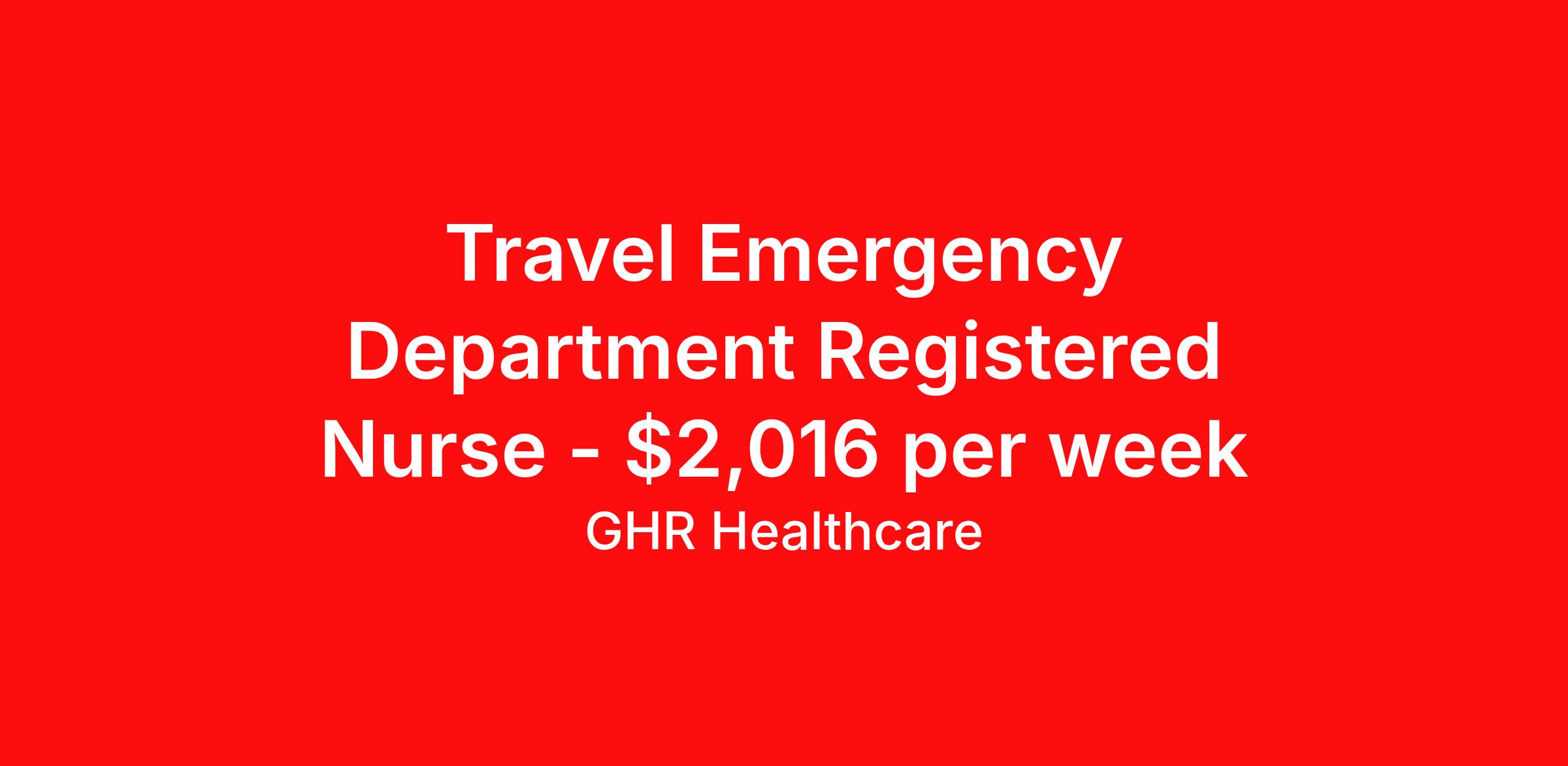 Travel Emergency Department Registered Nurse - $2,016 per week
