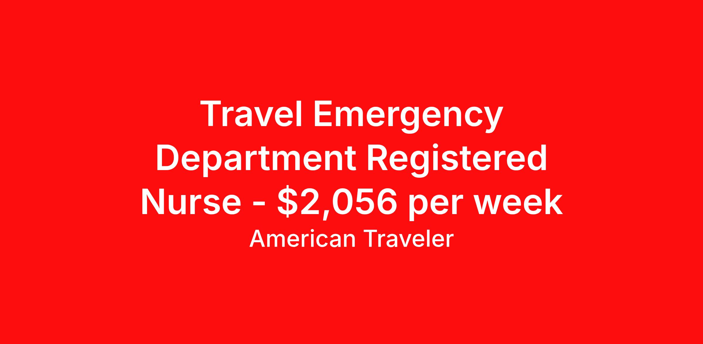 American Traveler is seeking a travel nurse RN ED - Emergency Department for a travel nursing job in Lewiston, Idaho. Job Description & Requirements Specialty: ED - Emergency Department Discipline: RN Start Date: 04/06/2026 Duration: 13 weeks 36 hours per week Shift: 12 hours, nights Employment Type: Travel Assignment Overview Shift: Nights, 3x12hrs Hours: 36 hrs/wk Start Date: Apr 6, 2026 Length: 13 weeks Openings: 1 Description American Traveler is seeking an experienced RN for a night shift Emergency Department position in Lewiston, ID, requiring 4 years of recent ER experience and an active Idaho RN license. Details Emergency Department (ER) setting within a hospital Night shift schedule: 7:00 PM – 7:00 AM 13-week contract Every other weekend required Requirements Active Idaho RN license (or Compact RN license) required and must be in hand at time of consideration Current AHA certifications required: BLS, ACLS, PALS, and TNCC — no certifications accepted from RCIS or RQI, and none may expire within 30 days of start date Minimum 4 years of recent ER experience in a hospital setting required SSN and date of birth required for consideration No gaps in work history of 90 days or more within the past 12 months Additional Information Responsible for shift accountability in delivering evidence-based nursing care to Emergency Department patients using the nursing process Demonstrates critical thinking and clinical judgment in the safe planning and delivery of patient care Delegates patient care priorities based on staff education and experience, and provides direction and supervision to assigned personnel Maintains clinical competencies through ongoing continuing education Candidates residing within 50 miles of the facility are subject to a local pay rate No previous permanent or contract employment at a Community Health facility should be disclosed during the consideration process American Traveler Job ID P-680597. Pay package is based on 12 hour shifts and 36 hours per week (subject to confirmation) with tax-free stipend amount to be determined. Posted job title: Travel RN - Emergency Dept About American Traveler With over 25 years of experience, American Traveler has established a reputation for outstanding customer service. Our team ensures a smooth, worry-free experience for those starting on or expanding their travel nursing and allied careers. With thousands of travel nursing and allied jobs nationwide, our attentive and approachable recruiters find positions that align perfectly with your career aspirations and personal requirements. American Traveler offers exceptional benefits, including premium medical, dental, vision and life insurance beginning day one of your assignment, generous 401(k) match, substantial housing stipends, and more. Additionally, with 24/7 support and access to our in-house clinicians, you are assured confidence and comfort throughout your assignment. With our team behind you, you can relax and enjoy a rewarding travel career.
