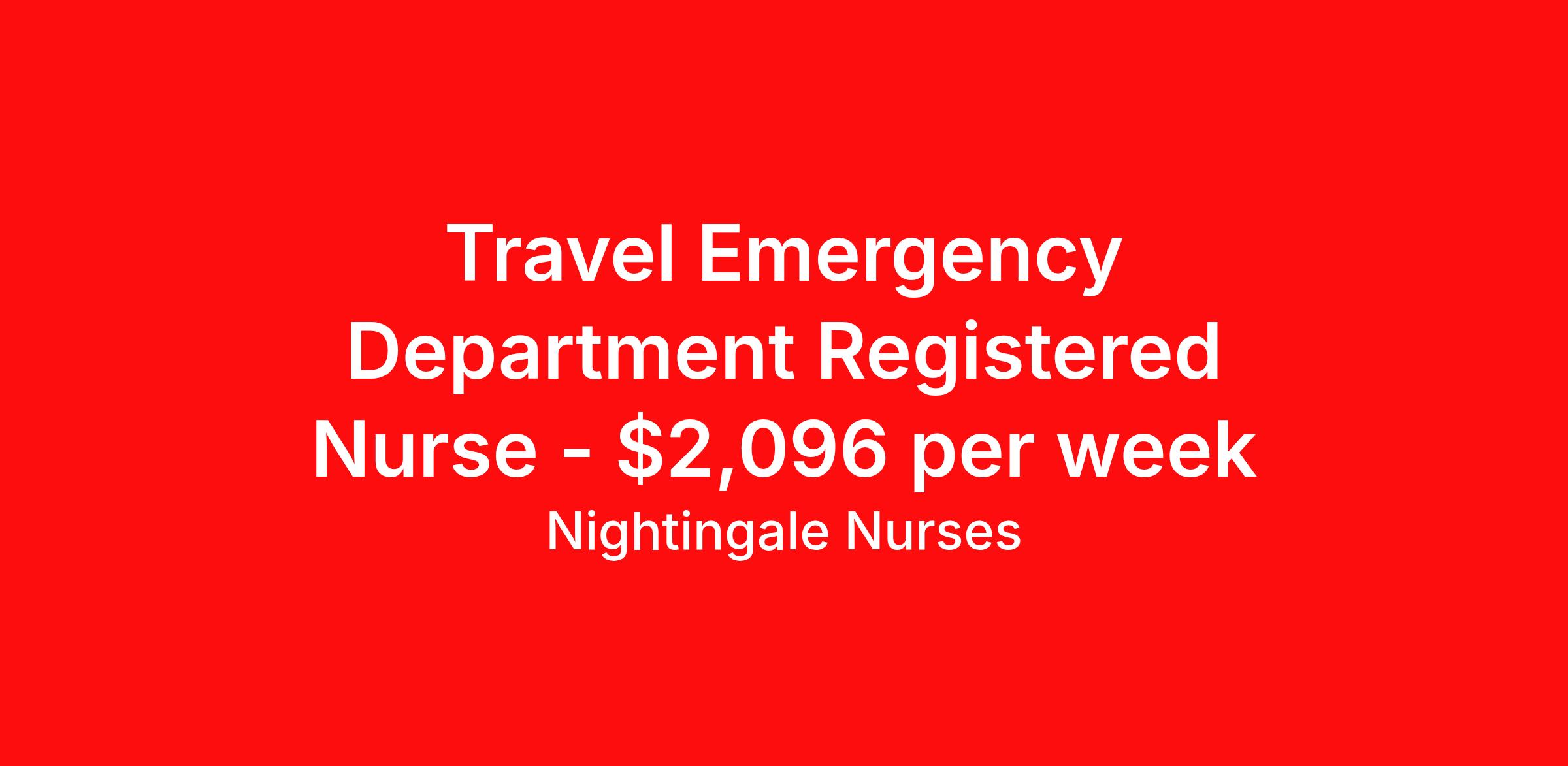 Nightingale Nurses is seeking a travel nurse RN ED - Emergency Department for a travel nursing job in Mauston, Wisconsin. Job Description & Requirements Specialty: ED - Emergency Department Discipline: RN Start Date: 04/17/2026 Duration: 8 weeks 36 hours per week Shift: 12 hours, nights Employment Type: Travel About Nightingale Nurses the first name in travel nursing You may not realize it, but as an RN with real world hospital experience, you are legendary. To the lives you’ve helped save, the patients you’ve cared for, and to the hospitals where you’ve done it. And you’re just getting started. Legendary is where Nightingale begins. We’re the first name in travel nursing, representing only the very best RNs. That’s why hospitals prefer us, allowing us to offer exceptional travel nursing assignments all over the US, as well as the highest pay rates and most extensive benefits in the industry. Nightingale facilitates every aspect of your travel nursing assignment, so you can focus on doing what you do best. We want you to grow, explore, and enjoy unrivaled liberty, the freedom to nurse.