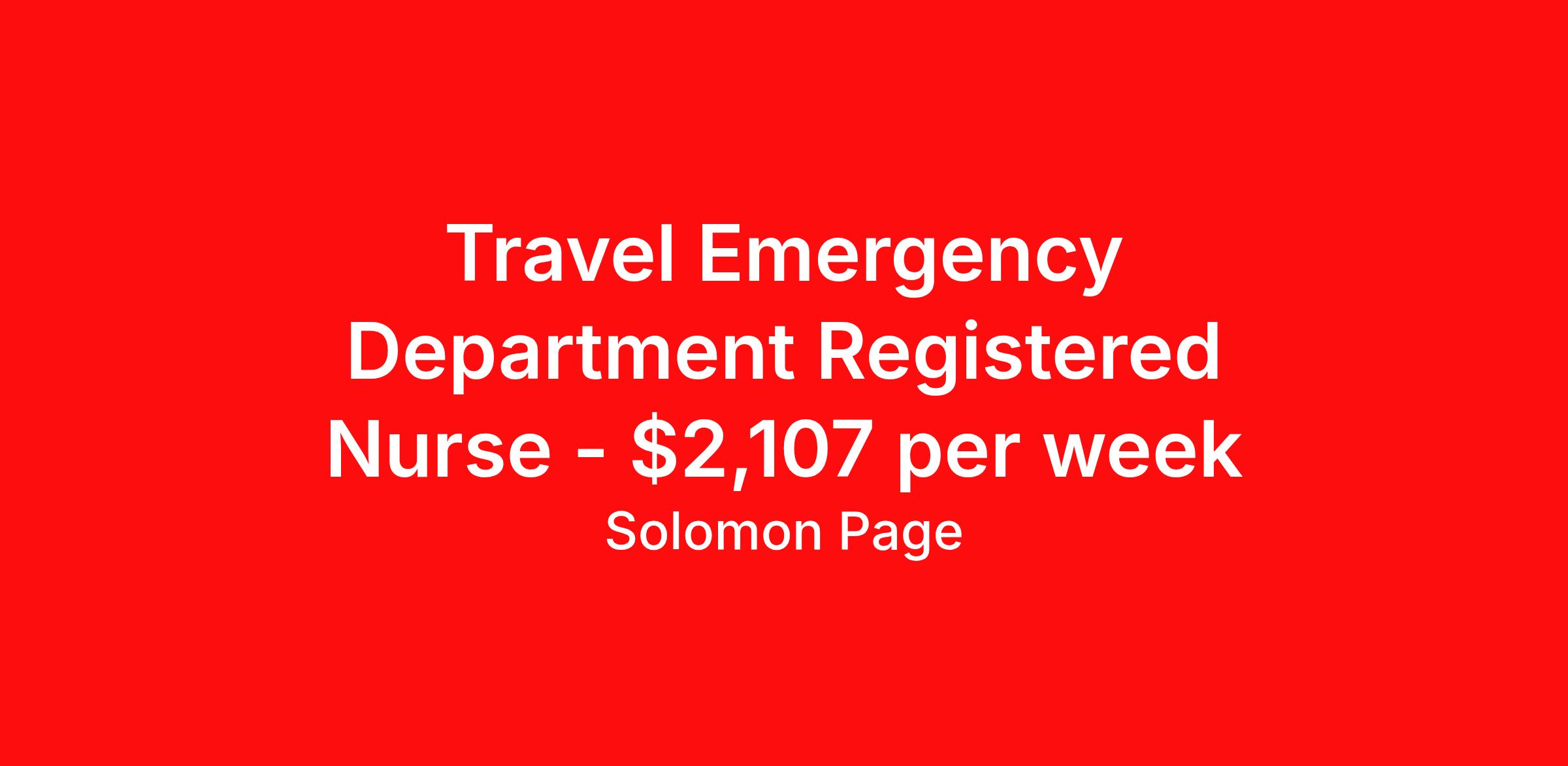 Travel Emergency Department Registered Nurse - $2,107 per week