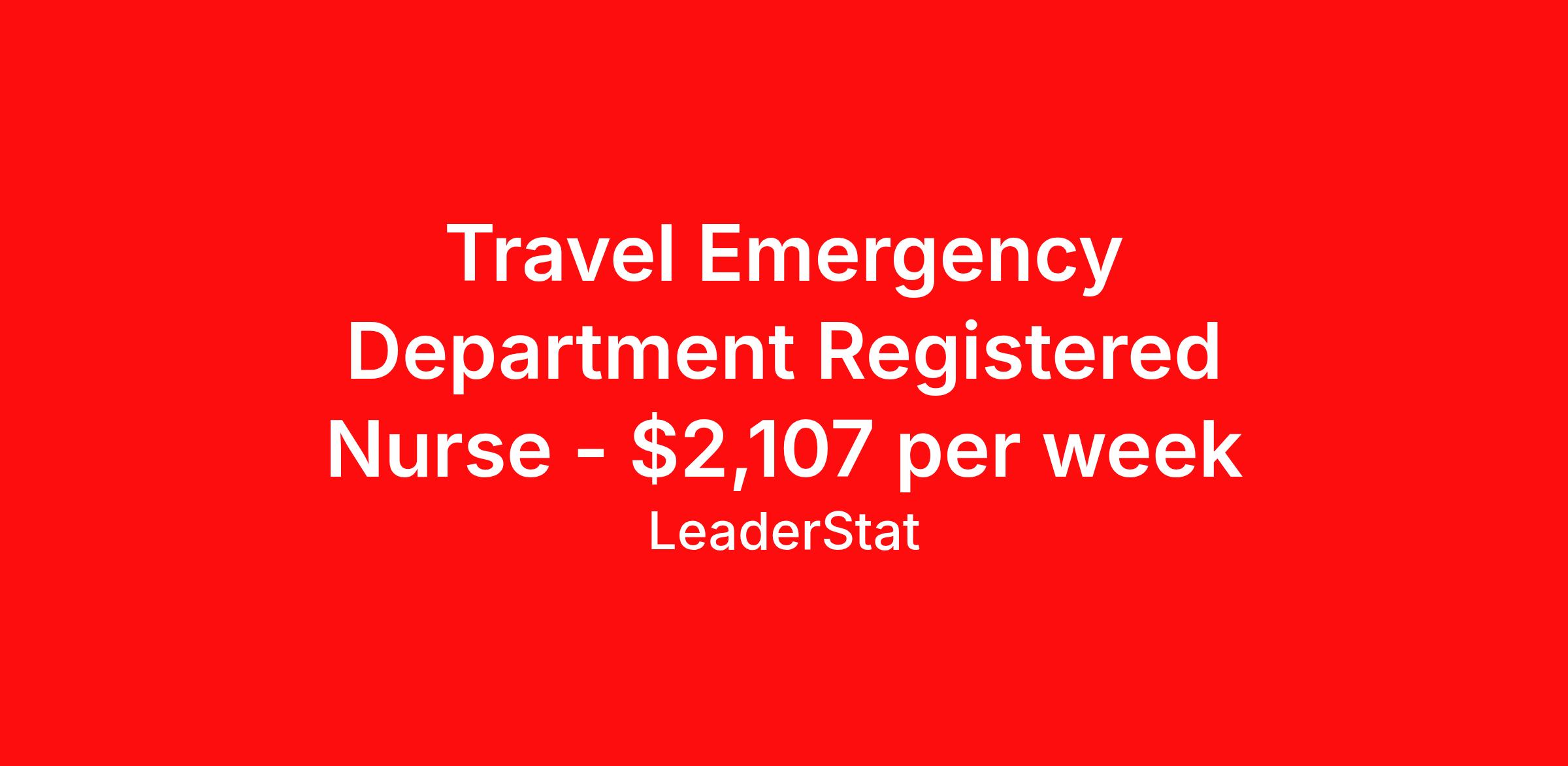 Travel Emergency Department Registered Nurse - $2,107 per week