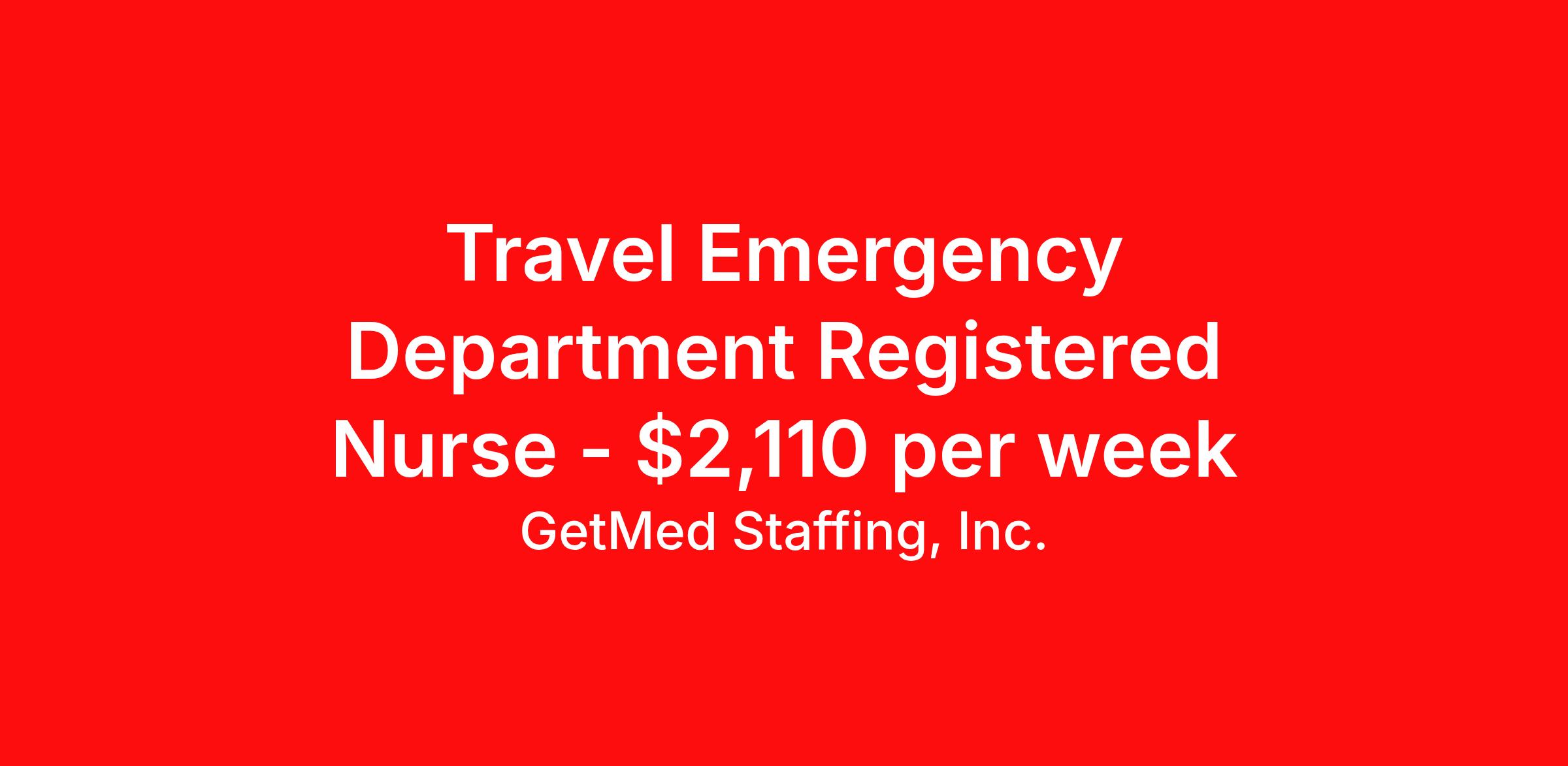 GetMed Staffing, Inc. is seeking a travel nurse RN ED - Emergency Department for a travel nursing job in Urbana, Illinois. Job Description & Requirements Specialty: ED - Emergency Department Discipline: RN Start Date: 04/13/2026 Duration: 13 weeks 36 hours per week Shift: 12 hours, nights Employment Type: Travel GetMed Staffing is searching for a strong ER RN to assist our traveler-friendly client. A minimum of 1-2 years of experience is required. Traveling with GetMed Staffing offers the unique opportunity to gain diverse experiences, both personally and professionally. Gain experience that matters. GetMed Staffing, Inc. Job ID 36145334. Pay package is based on 12 hour shifts and 36.0 hours per week (subject to confirmation) with tax-free stipend amount to be determined. Posted job title: RN:ER,19:00:00-07:00:00 About GetMed Staffing, Inc. We are a diversity owned company, specializing in healthcare recruiting services. We truly understand how important a healthcare travelers' relationship is with their recruiter, as well as our relationship is with our healthcare facilities. We recognize that the needs of our healthcare travelers can vary, and therefore we provide the personalized touch necessary to ensure a successful travel assignment each and every time. Our healthcare facilities and clients benefit from us putting our healthcare travelers first. GetMed Staffing is excited to be a leader within the industry by focusing on providing healthcare travelers with more choices and possibilities as they plan for their next healthcare travel assignment. Benefits Life insurance Medical benefits Dental benefits Vision benefits 401k retirement plan