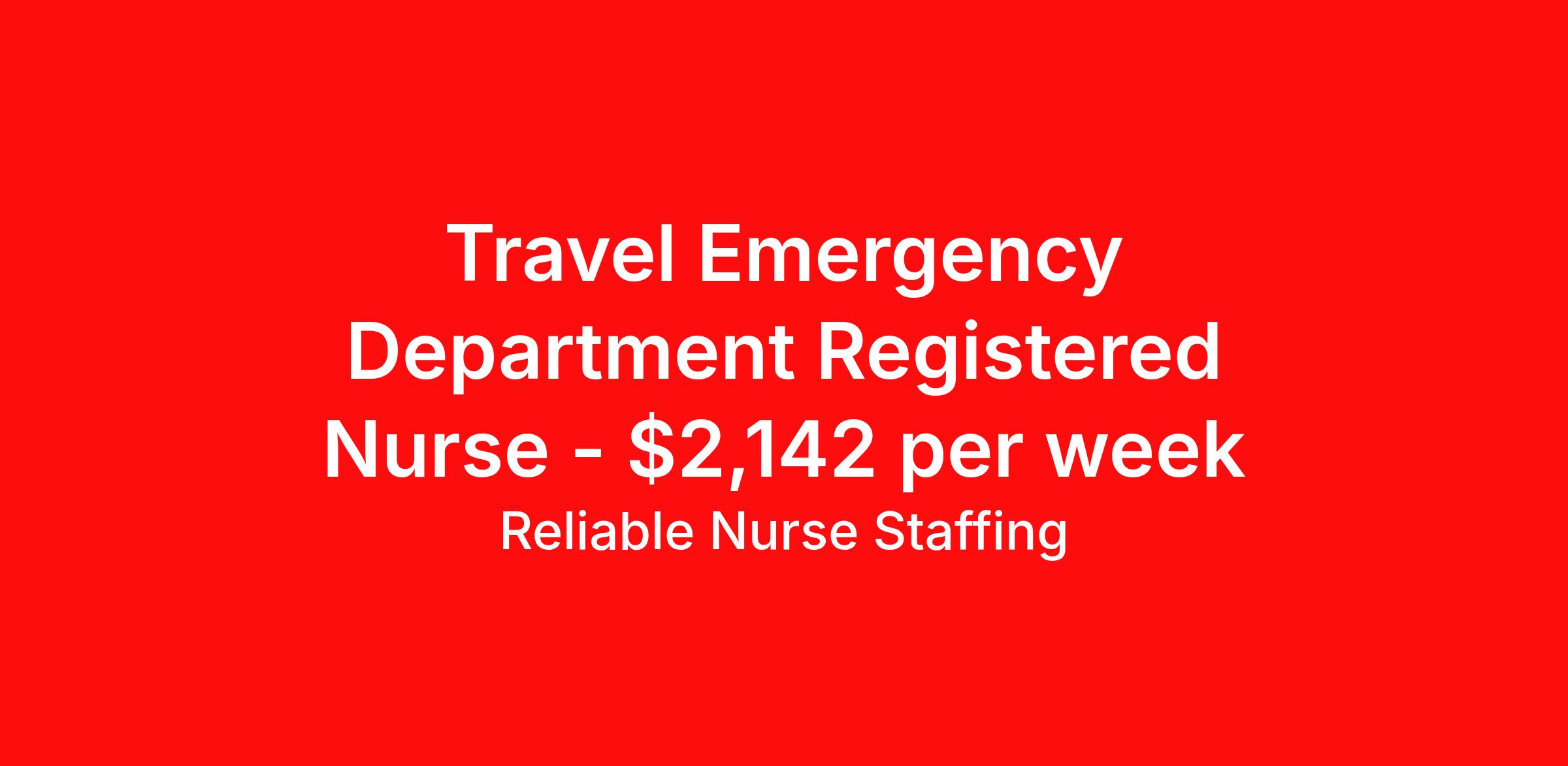 Reliable Nurse Staffing is seeking a travel nurse RN ED - Emergency Department for a travel nursing job in Lewiston, Idaho. Job Description & Requirements Specialty: ED - Emergency Department Discipline: RN Start Date: 04/06/2026 Duration: 13 weeks 36 hours per week Shift: 12 hours, nights Employment Type: Travel Reliable Nurse Staffing Job ID 60243709. Pay package is based on 12 hour shifts and 36 hours per week (subject to confirmation) with tax-free stipend amount to be determined. About Reliable Nurse Staffing Providing reliable, competent, and compassionate care to our patients and clients. Benefits Weekly pay Holiday Pay Guaranteed Hours Referral bonus Medical benefits Dental benefits Vision benefits Life insurance