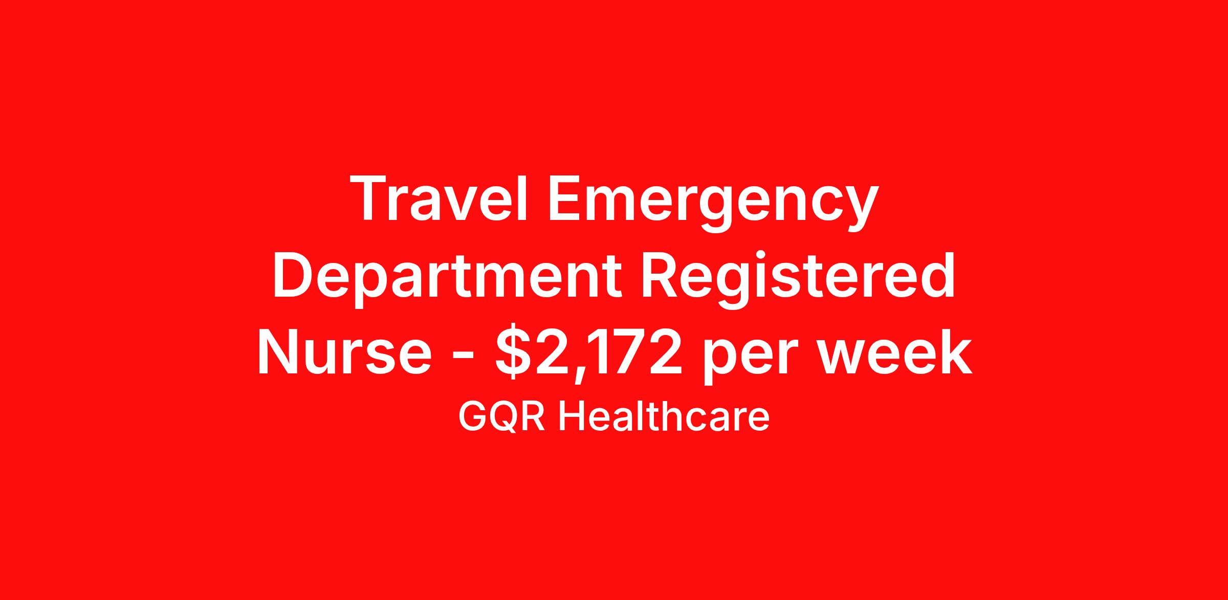 Travel Emergency Department Registered Nurse - $2,172 per week