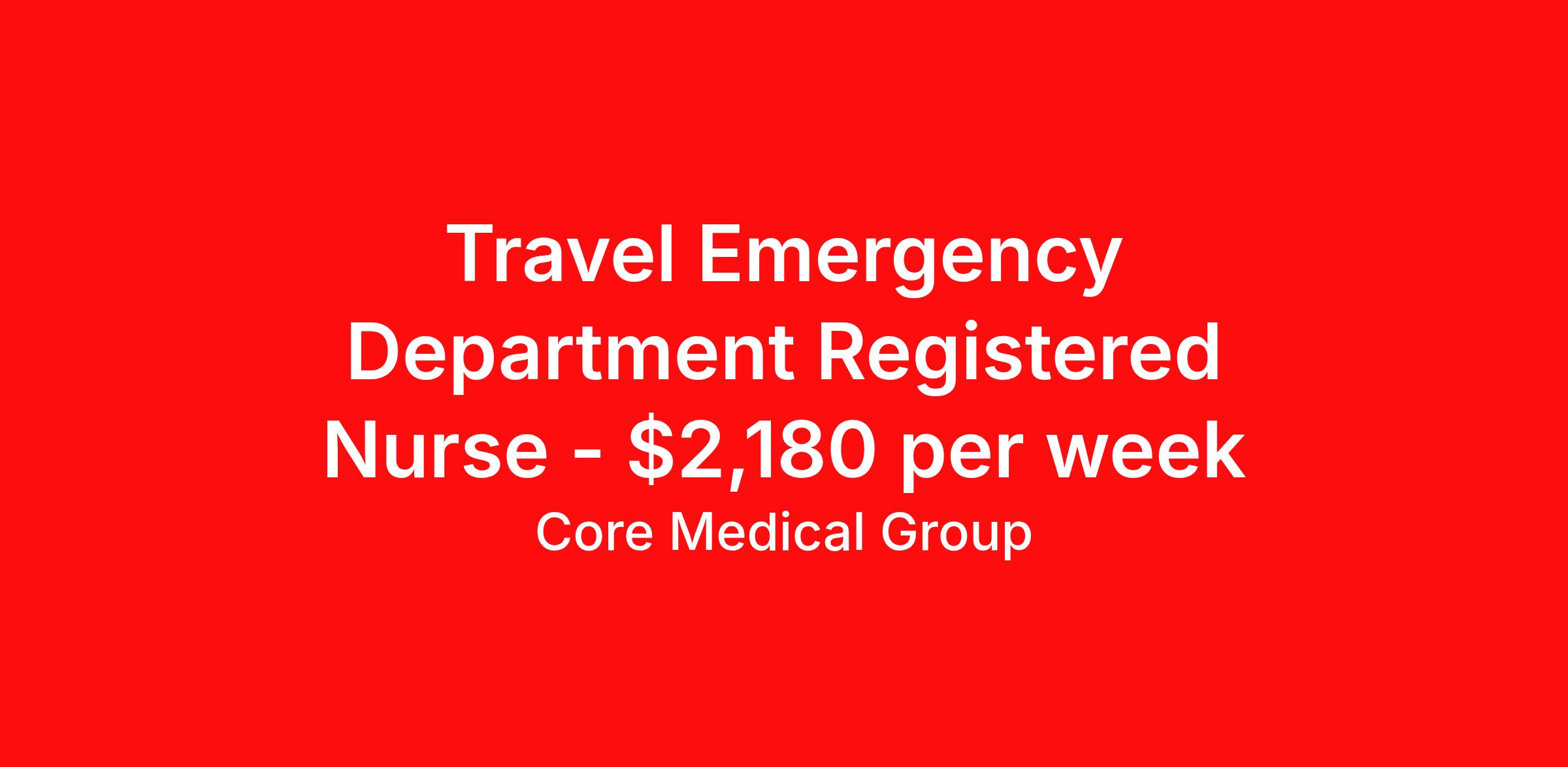 Core Medical Group is seeking a travel nurse RN ED - Emergency Department for a travel nursing job in Elmira, New York. Job Description & Requirements Specialty: ED - Emergency Department Discipline: RN Start Date: 04/13/2026 Duration: 13 weeks 36 hours per week Shift: 12 hours Employment Type: Travel Client in NY seeking Registered Nurse: Emergency Room for the following shift(s): Nights We are looking for a healthcare professional who is ready to provide exceptional patient care in this contract/travel role. Contract/travel assignments are typically 13 weeks, with potential to extend. Help us continue our mission to connect people, improve lives, and give back to the community by joining the CoreMedical Group team. When you work with CoreMedical Group, we put you first and treat you like family, supporting you every step of the way. CoreMedical Group is one of the largest healthcare staffing agencies in the country, with travel and contract positions located across the United States. Our recruiters will help you find the perfect job, whether it's across the country or across the street. In addition to dedicated, personalized support from your recruiter, when you work with CoreMedical Group you'll receive: Access to an extensive benefits package, including day 1 health, dental, and vision insurance, employer paid life insurance, a health reimbursement account, and more! Weekly paychecks with competitive pay packages Matching 401(k) benefits to help you save for retirement Licensure assistance and reimbursement to set you up for success on your contract Travel reimbursement and dedicated housing support while on assignment Referral cash bonuses when you connect us with other clinicians CoreMedical Group also offers you a free, all-inclusive vacation each year as our way of saying "thank you" for your hard work. Join other healthcare professionals on the annual Club CoreMed retreat and you'll see why our contract and travel professionals come back to us year after year! Your career is too valuable to tackle on your own. Let CoreMedical Group help you with your healthcare journey! *Estimate of weekly payments is intended for informational purposes and includes hourly wages, as well as reimbursements for meal & incidental expenses, and housing expenses incurred on behalf of the Company. Any benefits (medical/dental/vision) are in addition to the weekly pay. Please speak with your Recruiter for additional details. Estimated payments are subject to change until formal offer of assignment is made and accepted. Core Medical Group Job ID 1360096. Pay package is based on 12 hour shifts and 36 hours per week (subject to confirmation) with tax-free stipend amount to be determined. Posted job title: RN About Core Medical Group CoreMedical Group is one of the largest healthcare staffing agencies in the country. We have jobs nationwide in travel nursing, travel allied health, interim, locum tenens, and permanent placements! Join the staffing agency with Club CoreMed, the best perk in the industry - an all inclusive paid trip to a tropical resort! Benefits Weekly pay Holiday Pay Guaranteed Hours Continuing Education 401k retirement plan Pet insurance Company provided housing options Sick pay Wellness and fitness programs Mileage reimbursement Referral bonus Employee assistance programs Medical benefits Dental benefits Vision benefits Benefits start day 1 License and certification reimbursement Life insurance Discount program