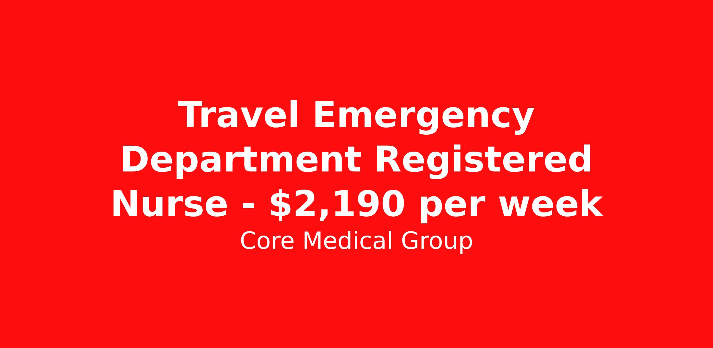 Core Medical Group is seeking a travel nurse RN ED - Emergency Department for a travel nursing job in Utica, New York. Job Description & Requirements Specialty: ED - Emergency Department Discipline: RN Start Date: 05/18/2026 Duration: 13 weeks 36 hours per week Shift: 12 hours Employment Type: Travel Client in NY seeking Registered Nurse: Emergency Room for the following shift(s): Eves We are looking for a healthcare professional who is ready to provide exceptional patient care in this contract/travel role. Contract/travel assignments are typically 13 weeks, with potential to extend. Help us continue our mission to connect people, improve lives, and give back to the community by joining the CoreMedical Group team. When you work with CoreMedical Group, we put you first and treat you like family, supporting you every step of the way. CoreMedical Group is one of the largest healthcare staffing agencies in the country, with travel and contract positions located across the United States. Our recruiters will help you find the perfect job, whether it's across the country or across the street. In addition to dedicated, personalized support from your recruiter, when you work with CoreMedical Group you'll receive: Access to an extensive benefits package, including day 1 health, dental, and vision insurance, employer paid life insurance, a health reimbursement account, and more! Weekly paychecks with competitive pay packages Matching 401(k) benefits to help you save for retirement Licensure assistance and reimbursement to set you up for success on your contract Travel reimbursement and dedicated housing support while on assignment Referral cash bonuses when you connect us with other clinicians CoreMedical Group also offers you a free, all-inclusive vacation each year as our way of saying "thank you" for your hard work. Join other healthcare professionals on the annual Club CoreMed retreat and you'll see why our contract and travel professionals come back to us year after year! Your career is too valuable to tackle on your own. Let CoreMedical Group help you with your healthcare journey! *Estimate of weekly payments is intended for informational purposes and includes hourly wages, as well as reimbursements for meal & incidental expenses, and housing expenses incurred on behalf of the Company. Any benefits (medical/dental/vision) are in addition to the weekly pay. Please speak with your Recruiter for additional details. Estimated payments are subject to change until formal offer of assignment is made and accepted. Core Medical Group Job ID 1363856. Pay package is based on 12 hour shifts and 36 hours per week (subject to confirmation) with tax-free stipend amount to be determined. Posted job title: RN About Core Medical Group CoreMedical Group is one of the largest healthcare staffing agencies in the country. We have jobs nationwide in travel nursing, travel allied health, interim, locum tenens, and permanent placements! Join the staffing agency with Club CoreMed, the best perk in the industry - an all inclusive paid trip to a tropical resort! Benefits Weekly pay Holiday Pay Guaranteed Hours Continuing Education 401k retirement plan Pet insurance Company provided housing options Sick pay Wellness and fitness programs Mileage reimbursement Referral bonus Employee assistance programs Medical benefits Dental benefits Vision benefits Benefits start day 1 License and certification reimbursement Life insurance Discount program