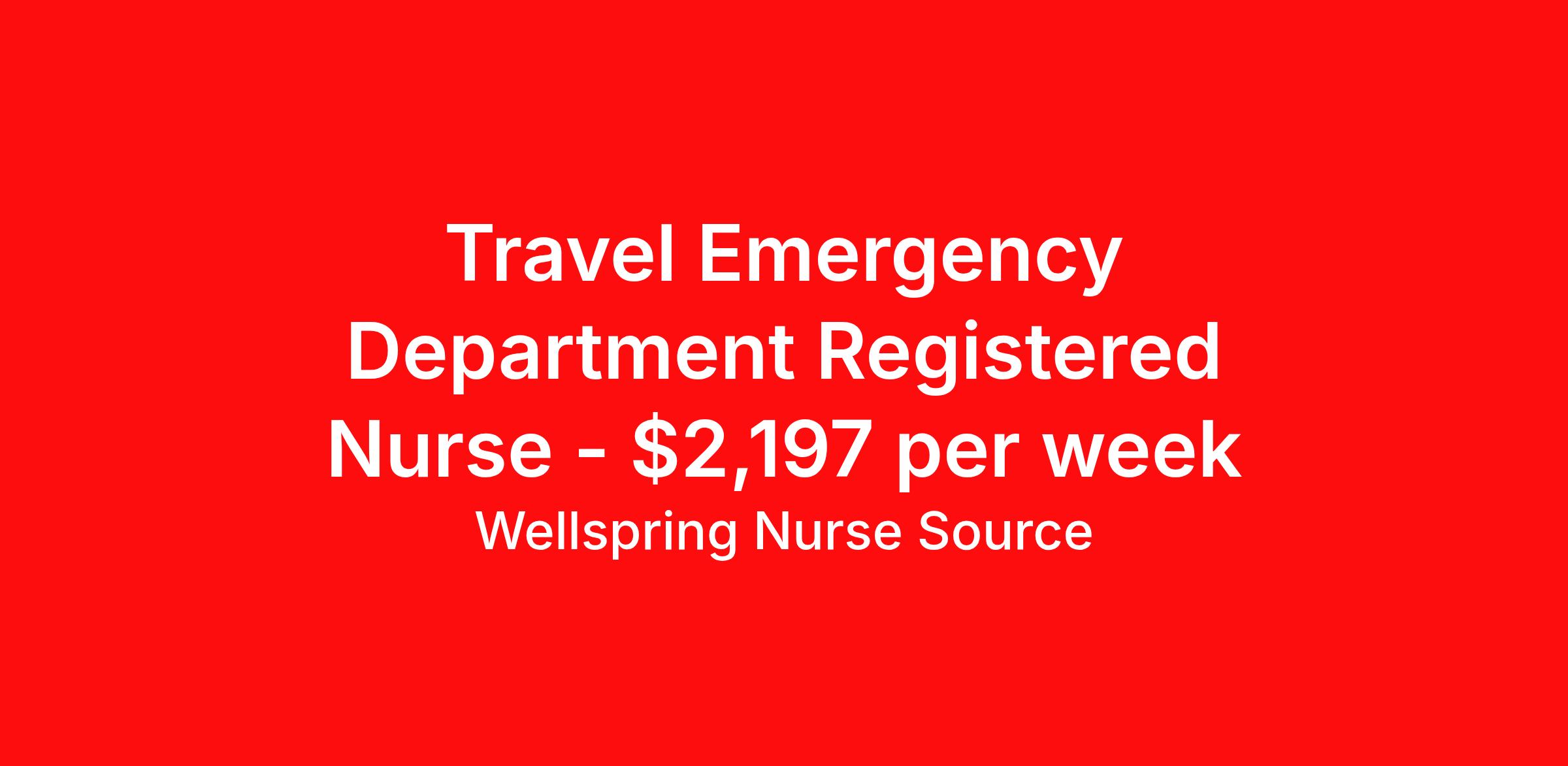 Wellspring Nurse Source is seeking a travel nurse RN ED - Emergency Department for a travel nursing job in Santa Fe, New Mexico. Job Description & Requirements Specialty: ED - Emergency Department Discipline: RN Start Date: ASAP Duration: 13 weeks 36 hours per week Shift: 12 hours, nights Employment Type: Travel Wellspring Nurse Source Job ID 36073527. Pay package is based on 12 hour shifts and 36.0 hours per week (subject to confirmation) with tax-free stipend amount to be determined. Posted job title: RN ER About Wellspring Nurse Source Wellspring is nurse owned and operated which means that we get you, we stand behind you, and we advocate for you. We are 100% committed to helping you find your best job at the best rate. We are unwavering in our commitment to supporting our clinicians on every step of their travel adventure, assisting with everything from onboarding and payroll to on-the-job clinical support with a dedicated Clinician Success Team. You’re not just a number at Wellspring, you’re a valued member of our family. Join us and experience the Wellspring difference.