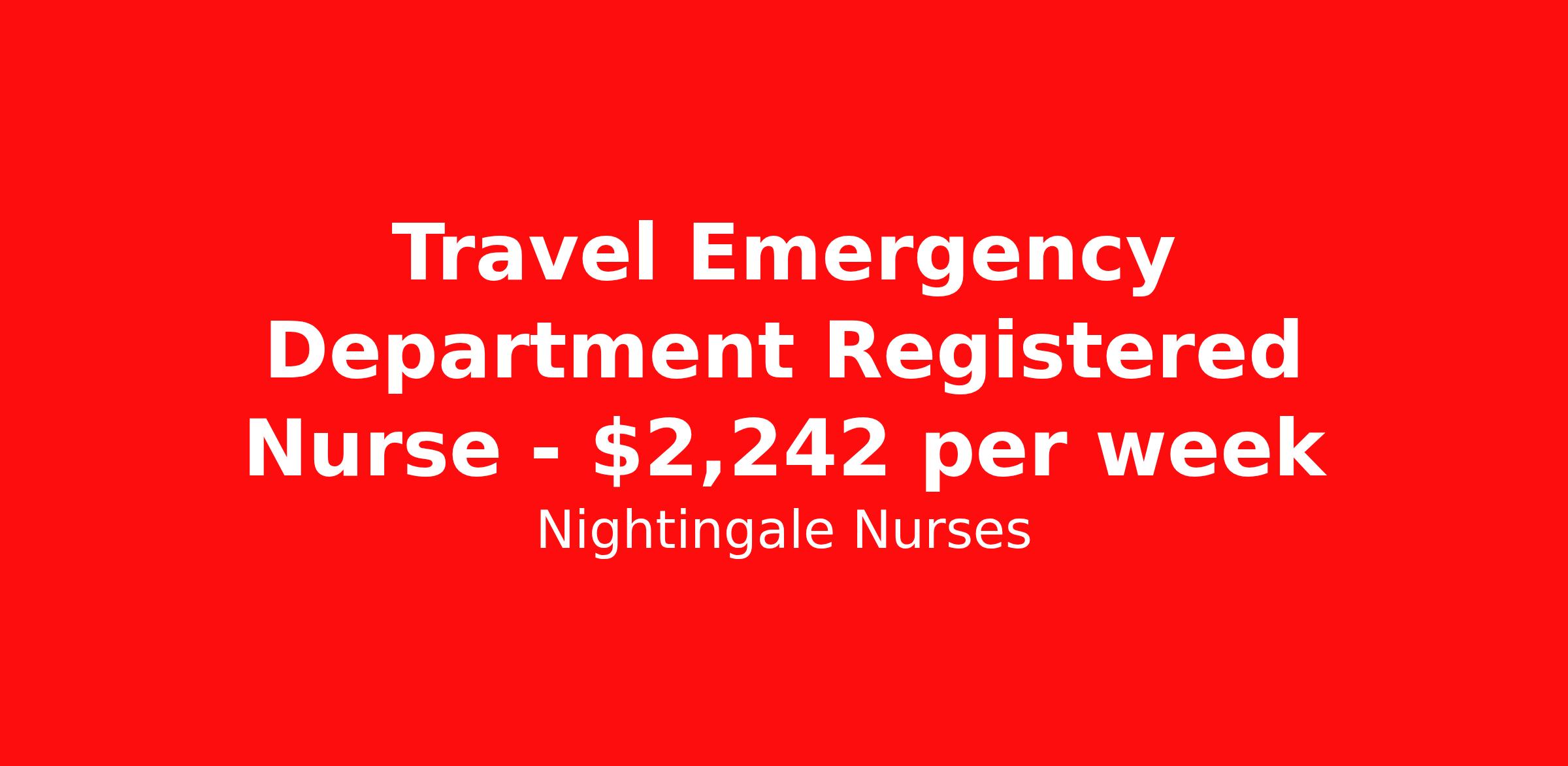 Nightingale Nurses is seeking a travel nurse RN ED - Emergency Department for a travel nursing job in Janesville, Wisconsin. Job Description & Requirements Specialty: ED - Emergency Department Discipline: RN Start Date: 03/21/2026 Duration: 13 weeks 36 hours per week Shift: 9 hours, nights Employment Type: Travel About Nightingale Nurses the first name in travel nursing You may not realize it, but as an RN with real world hospital experience, you are legendary. To the lives you’ve helped save, the patients you’ve cared for, and to the hospitals where you’ve done it. And you’re just getting started. Legendary is where Nightingale begins. We’re the first name in travel nursing, representing only the very best RNs. That’s why hospitals prefer us, allowing us to offer exceptional travel nursing assignments all over the US, as well as the highest pay rates and most extensive benefits in the industry. Nightingale facilitates every aspect of your travel nursing assignment, so you can focus on doing what you do best. We want you to grow, explore, and enjoy unrivaled liberty, the freedom to nurse.