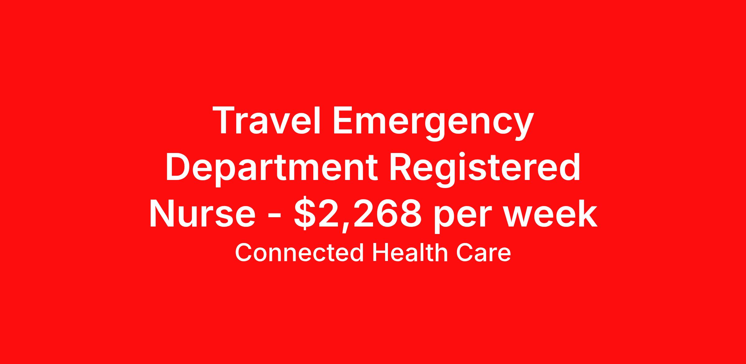 Connected Health Care is seeking a travel nurse RN ED - Emergency Department for a travel nursing job in Wauwatosa, Wisconsin. Job Description & Requirements Specialty: ED - Emergency Department Discipline: RN Start Date: ASAP Duration: 13 weeks 36 hours per week Shift: 12 hours Employment Type: Travel Travel/Local Contract RN - Emergency Department (ER) Wauwatosa, Wisconsin - 13.0 weeks Connected, your partner in Healthcare, Educational, Government, and Direct Hire services, is excited to connect qualified and passionate travel professional like you for a 13.0-week opportunity located in or near Wauwatosa, Wisconsin. Enjoy competitive compensation, exceptional benefits, and the rewarding opportunity to make a meaningful impact. Job Requirements Education Requirements: Nursing degree from an accredited program (RN) Certifications Requirements: BLS, ACLS, PALS, NIHSS (required); TNCC, CPI/MOAB, CEN (preferred) Experience Requirements: Minimum of 1 year ED experience within the past year; additional 2-5 years nursing experience preferred; first-time traveler accepted with 3 years ED experience Other Requirements: Ability to work night shifts; strong IV skills; excellent cardiac rhythm interpretation; ability to manage STEMI/CVA/Sepsis treatments; proficient in medication titration What We Offer Premium Pay That Values You: Weekly direct deposit (with next-day pay features coming soon!) at rates 13% above market average—we benchmark every assignment to make you feel like a valued member of our team and to ensure we're staying competitive. Comprehensive Insurance Coverage: Medical/dental/vision eligibility starting the 1st day of the month after your start date, continuing between active assignments—plus disability, life insurance, and sick leave, so you can focus on what you do best without added stress. Support Your Lifestyle: Paid housing or stipends (pet-friendly!) travel/mileage reimbursements; guaranteed hours and cancellation protection; nationwide opportunities spanning from major metros to underserved areas—we manage the details so you can focus on what matters most in your personal and professional life. Investment in Your Growth: 401(k) with competitive match, referral and loyalty bonuses, License CEU reimbursements, are just some of the ways we invest in our team because you deserve a partner who grows with you. Streamlined Compliance & Flexibility: Reimbursed/fast-tracked licenses/certs; user-friendly Portal for seamless onboarding (avg 14 days); shifts customized to your needs; rapid interviews (38 hours typical)—we value your time, making compliance effortless and flexible to fit your unique schedule. Why Connected Health Care? We Care About Your Journey: In this demanding field, we start by listening—providing upfront insights on roles, pay, and perks so you feel seen and supported from the first click, aligned with our motto: If we take care of our team, they take care of our partners. Personalized Job Matches That Fit You: Tell us your story, preferences like specialties, facility size, city/state preferences, or work-life balance needs—we craft opportunities where you shine, with 92% of our candidates extending or referring because we truly prioritize what matters to you. Unwavering Support Every Step: From 24/7 recruiter access to fast compliance and career guidance, we're your dedicated partner—delivering 13% higher pay than the national average, 92% retention rates, quick turnaround times for interviews/offers, and national placements because we know the toll of shortages and want to ease it for you. A Genuine Partnership Built on Trust: We're not just a staffing firm; we're your advocate in a competitive world—turning challenges into rewarding paths with empathy, transparency, direct client focus for seamless fits, and a network that feels like family, helping you build the career you deserve. Job Responsibilities Provide high-quality emergency nursing care to diverse patient populations, including neonates to geriatrics, in a fast-paced ED setting. Administer medications, monitor cardiac rhythms, and interpret telemetry data to ensure patient safety and appropriate interventions. Collaborate with multidisciplinary team members, including CNA, RT, hospitalists, and ED educator, to coordinate patient care and maintain optimal workflows. Perform skilled procedures such as IV placement, Foley and NGT management, and peripheral blood draws with proficiency and safety. Document patient assessments, treatments, and outcomes accurately in EPIC EMR system and communicate effectively with team members and patients. Apply now through Connected Health Care – submit your resume today! Connected Healthcare Job ID 173966. Pay package is based on 12 hour shifts and 36 hours per week (subject to confirmation) with tax-free stipend amount to be determined. Posted job title: Travel/Local Contract RN - Emergency Department (ER) About Connected Health Care Connected Health Care is a nationally recognized healthcare recruiting and staffing agency specializing in travel nursing, travel allied health, interim leadership, per-diem staffing, and permanent placement. Our team of professional account managers, recruits, and credentialists are focused on providing you with the most fulfilling career path that aligns with your personal goals, whether you are traveling with us for a season or looking for a permanent place to call home. Benefits Weekly pay Holiday Pay Guaranteed Hours Continuing Education 401k retirement plan Company provided housing options Cancelation protection Mileage reimbursement Referral bonus Employee assistance programs Medical benefits Dental benefits Vision benefits Benefits start day 1 License and certification reimbursement