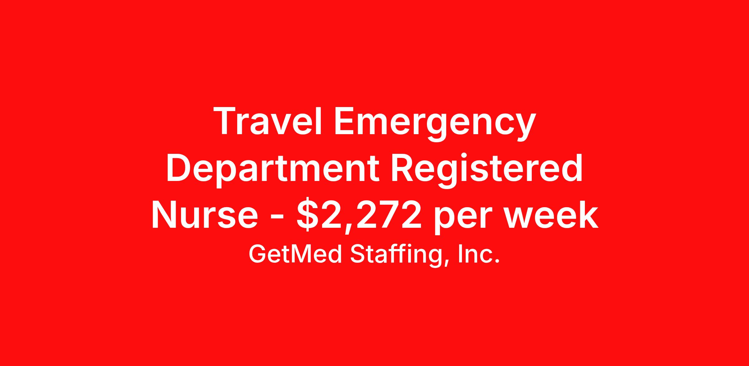 GetMed Staffing, Inc. is seeking a travel nurse RN ED - Emergency Department for a travel nursing job in Utica, New York. Job Description & Requirements Specialty: ED - Emergency Department Discipline: RN Start Date: 04/13/2026 Duration: 13 weeks 36 hours per week Shift: 12 hours, days Employment Type: Travel GetMed Staffing is searching for a strong ER RN to assist our traveler-friendly client. A minimum of 1-2 years of experience is required. Traveling with GetMed Staffing offers the unique opportunity to gain diverse experiences, both personally and professionally. Gain experience that matters. GetMed Staffing, Inc. Job ID 36183285. Pay package is based on 12 hour shifts and 36.0 hours per week (subject to confirmation) with tax-free stipend amount to be determined. Posted job title: RN:ER,07:00:00-19:00:00 About GetMed Staffing, Inc. We are a diversity owned company, specializing in healthcare recruiting services. We truly understand how important a healthcare travelers' relationship is with their recruiter, as well as our relationship is with our healthcare facilities. We recognize that the needs of our healthcare travelers can vary, and therefore we provide the personalized touch necessary to ensure a successful travel assignment each and every time. Our healthcare facilities and clients benefit from us putting our healthcare travelers first. GetMed Staffing is excited to be a leader within the industry by focusing on providing healthcare travelers with more choices and possibilities as they plan for their next healthcare travel assignment. Benefits Life insurance Medical benefits Dental benefits Vision benefits 401k retirement plan
