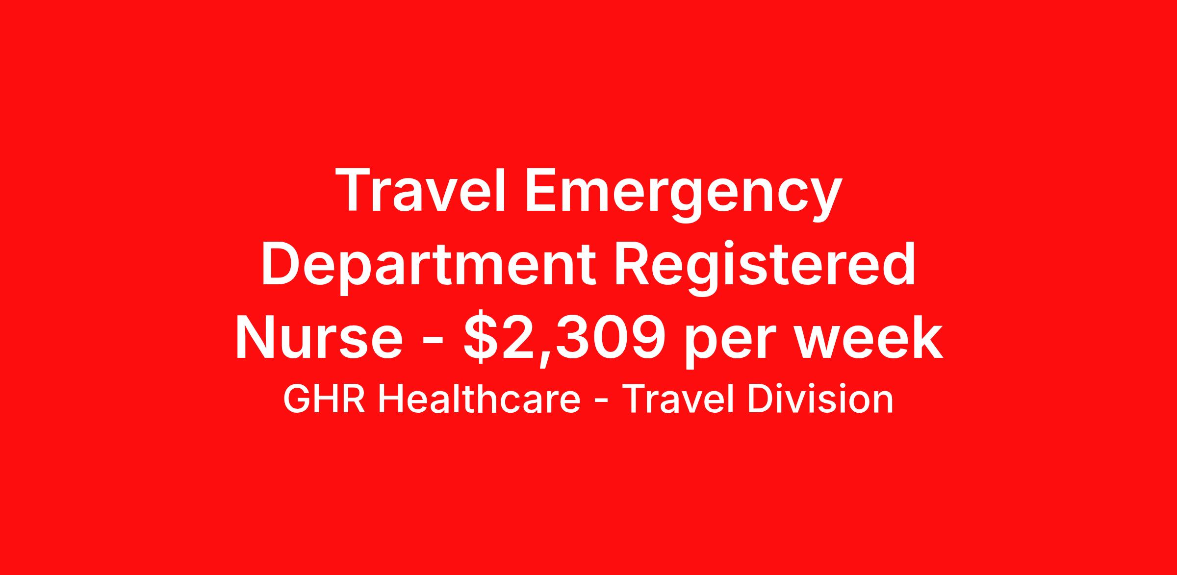 GHR Healthcare - Travel Division is seeking a travel nurse RN ED - Emergency Department for a travel nursing job in Watertown, New York. Job Description & Requirements Specialty: ED - Emergency Department Discipline: RN Start Date: 04/06/2026 Duration: 13 weeks 36 hours per week Shift: 12 hours Employment Type: Travel GHR Healthcare - Travel Division Job ID 75601705. Pay package is based on 12 hour shifts and 36 hours per week (subject to confirmation) with tax-free stipend amount to be determined. About GHR Healthcare - Travel Division For over 30 years, GHR Healthcare has been the bridge between healthcare professionals and the facilities that need them nationwide. We're committed to uncovering your ideal fit, supported by GHR's dedication to competitive compensation, transparent communication, and a devoted team that genuinely cares about your career journey. You can trust us to stand by your side as your advocate, confidante, and partner in advancing your career. At GHR, care and consideration are at the heart of everything we do. Visit ghrhealthcare.com to learn more.