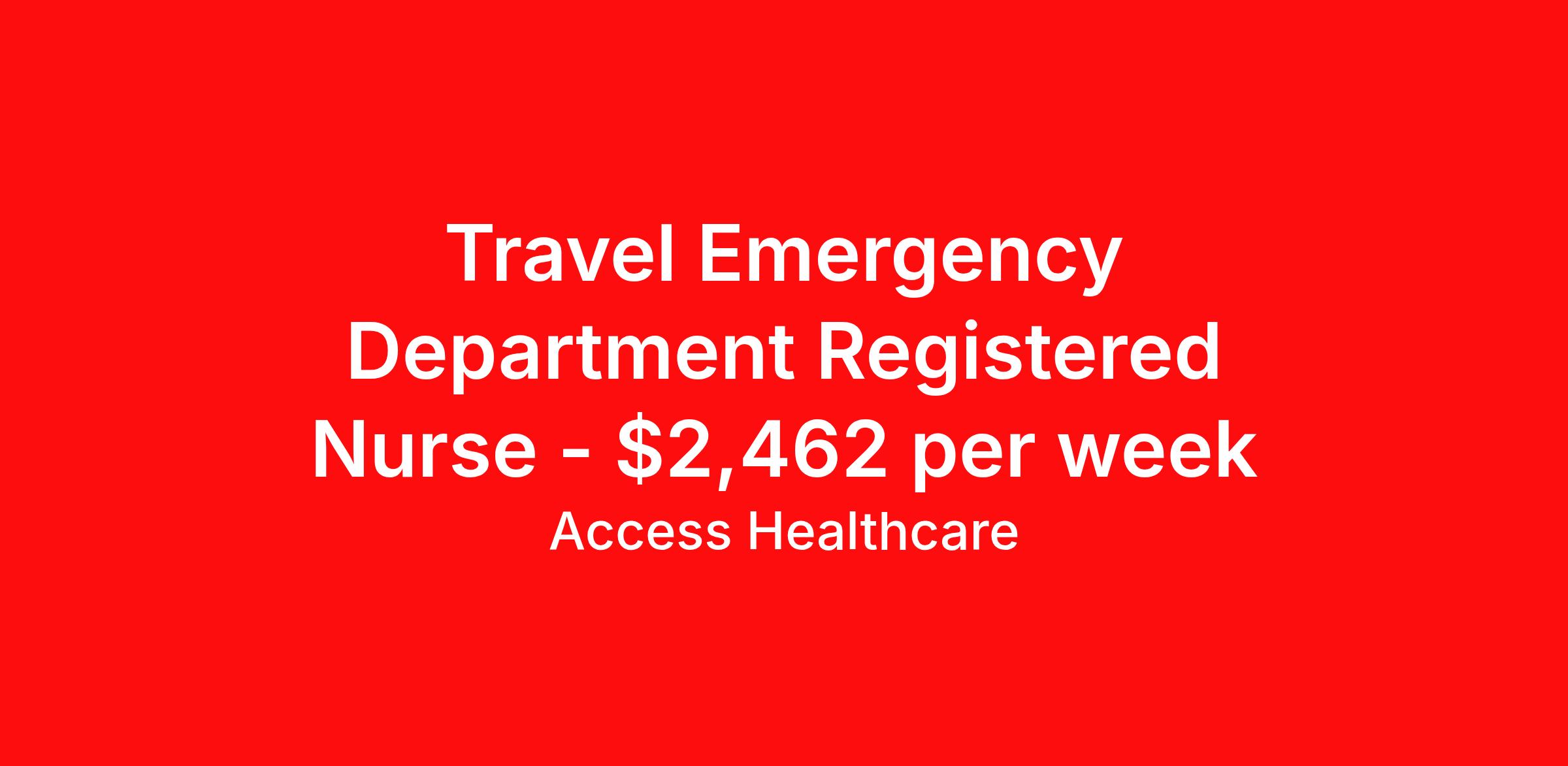 Access Healthcare is seeking a travel nurse RN ED - Emergency Department for a travel nursing job in Calais, Maine. Job Description & Requirements Specialty: ED - Emergency Department Discipline: RN Start Date: 03/23/2026 Duration: 4 weeks 36 hours per week Shift: 12 hours, rotating Employment Type: Travel Access Healthcare Job ID 76283426. Pay package is based on 12 hour shifts and 36 hours per week (subject to confirmation) with tax-free stipend amount to be determined. About Access Healthcare Access Healthcare aims to provide superior service to our nursing family by providing around the clock support, competitive pay packages and an unmatched benefits package! Unlike other agencies, we offer a true family feel and work with you to find the placement that is right for you. We offer one of the top leading pay packages in the industry and we are ready to get you the money you deserve! Access Healthcare was founded by two travel nurses, Danielle and Diego, who had a dream and a shared vision of creating an agency which all nurses would want to work with. Our passion has led us to where we are today as one of the top 10 agencies in our home state of New Jersey, with access to contracts in all 50 states! We encourage you to join our team and we cannot wait to get to know you!