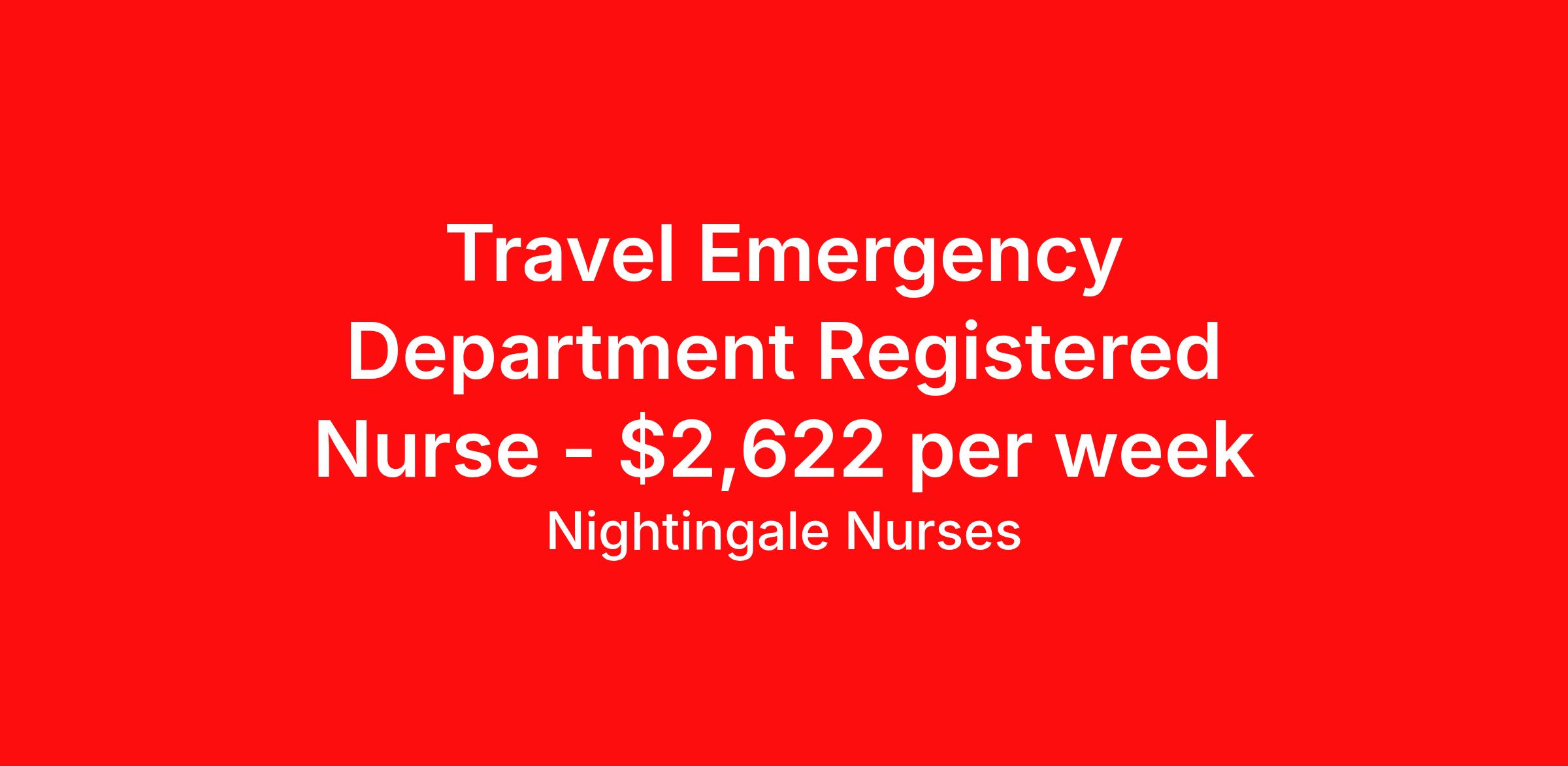 Nightingale Nurses is seeking a travel nurse RN ED - Emergency Department for a travel nursing job in Clinton, Maryland. Job Description & Requirements Specialty: ED - Emergency Department Discipline: RN Start Date: 04/20/2026 Duration: 13 weeks 48 hours per week Shift: 12 hours, nights Employment Type: Travel About Nightingale Nurses the first name in travel nursing You may not realize it, but as an RN with real world hospital experience, you are legendary. To the lives you’ve helped save, the patients you’ve cared for, and to the hospitals where you’ve done it. And you’re just getting started. Legendary is where Nightingale begins. We’re the first name in travel nursing, representing only the very best RNs. That’s why hospitals prefer us, allowing us to offer exceptional travel nursing assignments all over the US, as well as the highest pay rates and most extensive benefits in the industry. Nightingale facilitates every aspect of your travel nursing assignment, so you can focus on doing what you do best. We want you to grow, explore, and enjoy unrivaled liberty, the freedom to nurse.