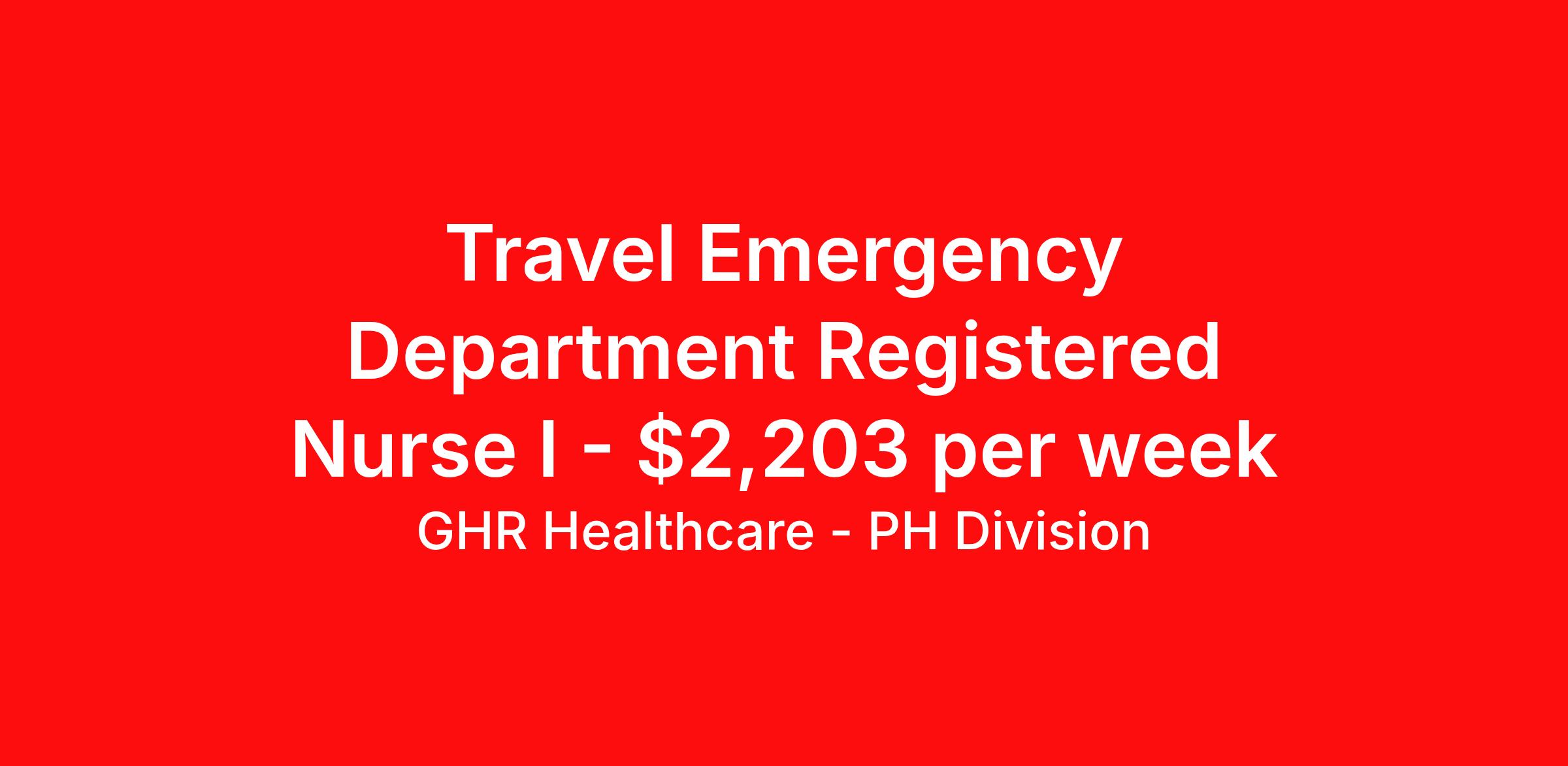 GHR Healthcare - PH Division is seeking a travel nurse RN ED - Emergency Department Level I for a travel nursing job in Altoona, Pennsylvania. Job Description & Requirements Specialty: ED - Emergency Department Discipline: RN Start Date: 04/06/2026 Duration: 12 weeks 36 hours per week Shift: 12 hours Employment Type: Travel Planet Healthcare Job ID 75828283. Pay package is based on 12 hour shifts and 36 hours per week (subject to confirmation) with tax-free stipend amount to be determined. About GHR Healthcare - PH Division For over 30 years, GHR Healthcare has been the bridge between healthcare professionals and the facilities that need them nationwide. We're committed to uncovering your ideal fit, supported by GHR's dedication to competitive compensation, transparent communication, and a devoted team that genuinely cares about your career journey. You can trust us to stand by your side as your advocate, confidante, and partner in advancing your career. At GHR, care and consideration are at the heart of everything we do. Visit ghrhealthcare.com to learn more.