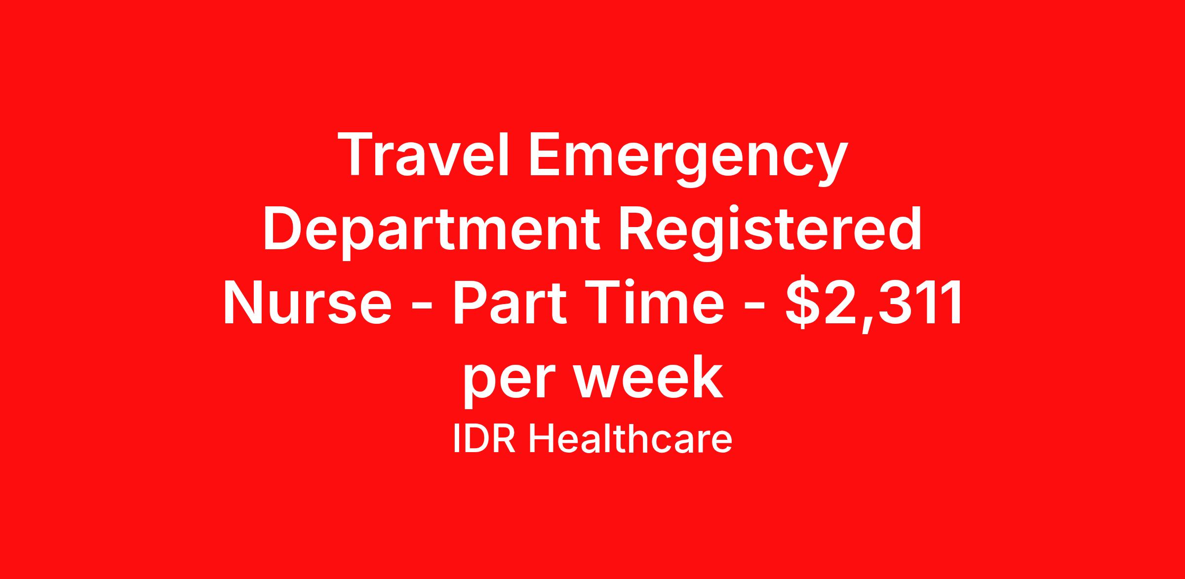 Travel Emergency Department Registered Nurse - Part Time - $2,311 per week